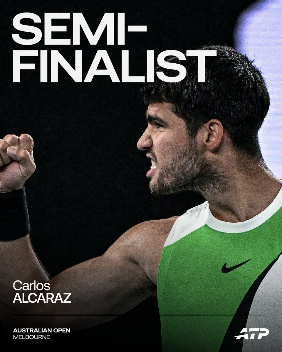 ATPTour(网球)报道。卡洛斯·阿尔卡拉斯以7-5、6-2、6-1击败亚历克斯·德米纳尔,成为历史上第8位进入澳大利亚网球公开赛半决赛的西班牙男选手。这场2026年澳网半决赛于1月27日在墨尔本举行,阿尔卡拉斯直落三盘获胜晋级。