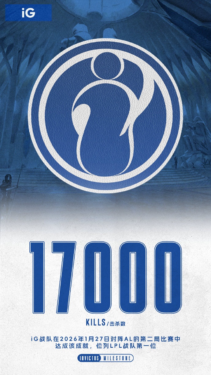 在对阵AL的比赛中,iG斩获队史第17000次击杀,继续领跑LPL总击杀榜。山海无界,热血未央,我们的锋芒将继续炽热于赛场。