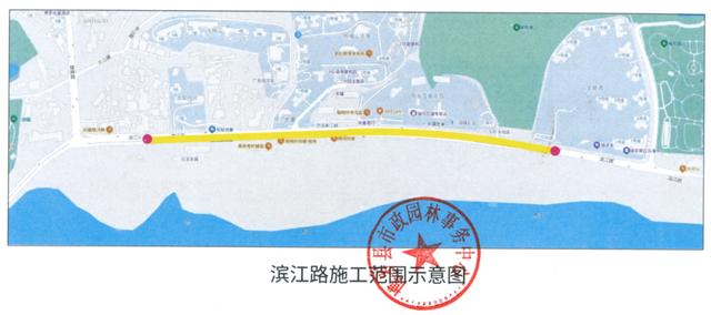 一、施工路段为滨江路(矮岗路口以东150米至金碧湾段,改造总长度约1.013公里)。