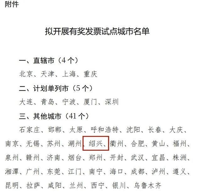 拟开展有奖发票试点城市名单