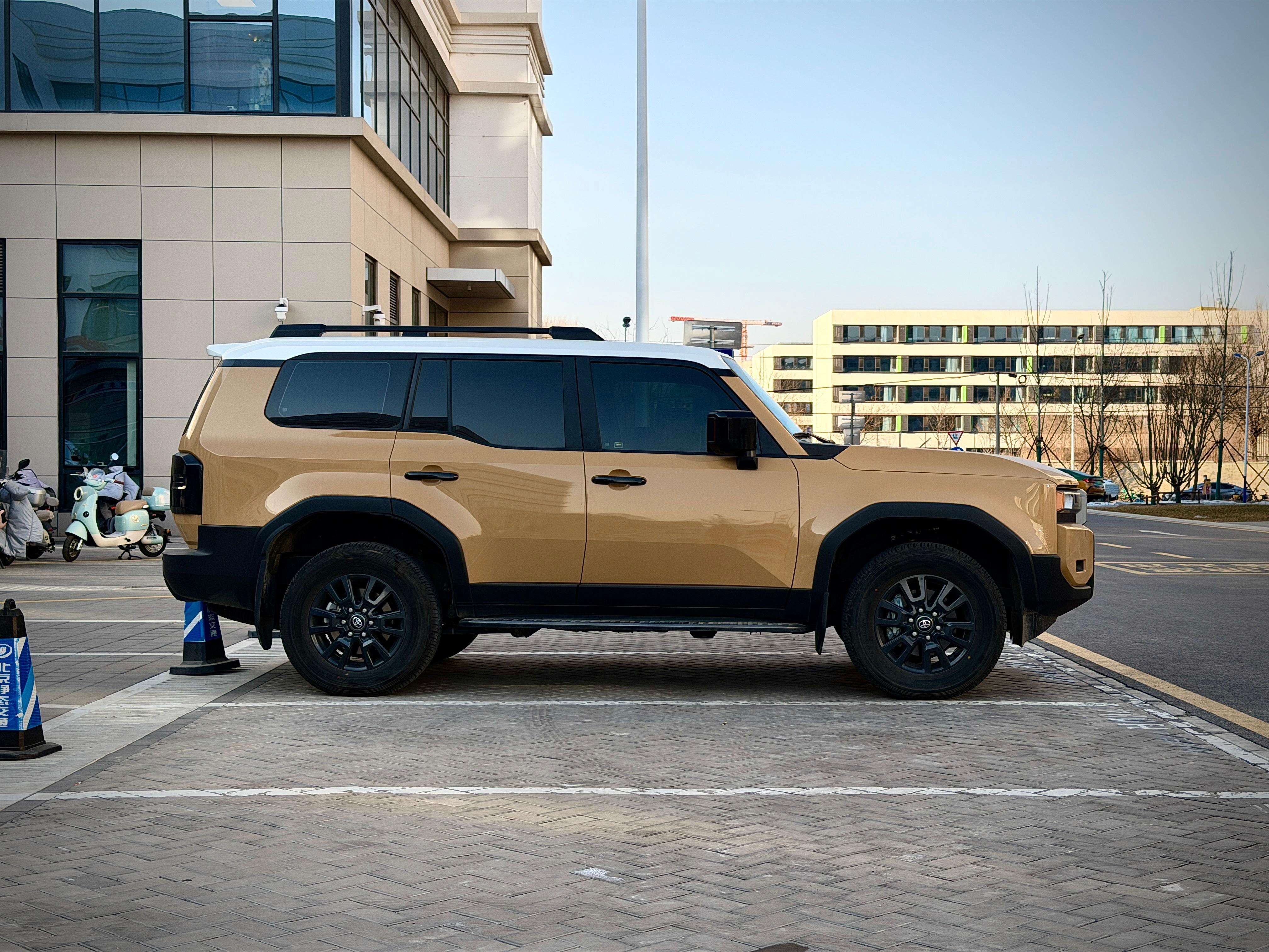 新霸道,看着秀气多了,而且有种赛博复古的感觉,在北京的冬天,这种气质还有点忧郁。当然,我说的是图里这个城市风格版本的前脸,3颗LED灯横排成矩形,另一个越野版本,是大圆灯。设计师依旧是渡边义人(Yoshito Watanabe),不过LC250这代的目标。从外观上弱化了霸气的硬派风格,用复古+科技的风格,去让霸道更加豪华,更符合现在越来越多新能源的审美需求。一个显而易见的设计,那就是进气格栅面积,在设计上被极大的弱化了,这明显就是新能源审美。复古的元素上,我觉得这个卡其黄+白色车顶,以及车体中部很点睛的黑色(门把手、后视镜、水切,尤其是白色车顶和黄色车身衔接处,故意用黑色线条隔开),特有马里奥那种味儿,就是高饱和度+明晰线条勾勒那味儿。当然了,LC车迷看到的复古不太一样。城市版3LED矩形灯是在致敬1989年首代普拉多的方正风格,如图四。而圆灯也有源头,是经典FJ40,如图五。侧面很绝。一条和地面平行的腰线是贯穿整个车身的,而且这个腰线不注意,你不会发现他是贯穿整个车身的,让整个车色更一体,反正车顶和车底的线条已经够长够硬够明显了。中间这个腰线很平直,但是C柱往后的俯冲感依旧强烈。上面C柱玻璃开始收窄,向上提拉视觉中心。下面正好是后轮拱的膨出折线,吃窄了正好往上走的黄色车身,也是重心向上二次提拉。所以虽然LC250没有像老揽胜那样尖尖的屁股,但是动感依旧强烈。侧面这个黑色门把手撞色真好看,像一块巧克力。屁股不聊了,没有感觉。大v聊车丰田lc250腚腚聊设计