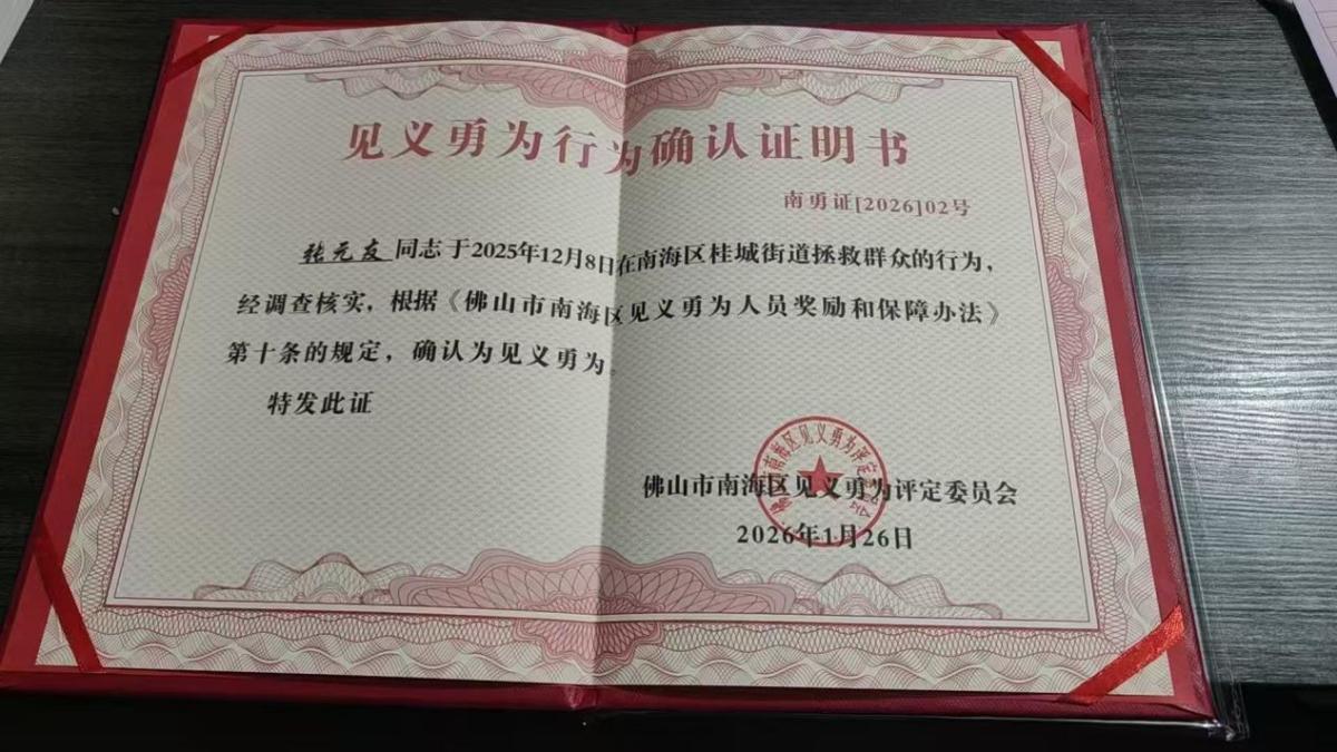 凡人善举,最抚人心。张元友在危难时刻挺身而出、不顾个人安危救助落水少年的英勇行为,恰好契合了《佛山市南海区见义勇为人员奖励和保障办法》中“在他人遇险时,救死扶伤,表现突出”的认定标准。事件发生后,佛山市南海区相关部门高度重视,经调查取证、严格审核,由区见义勇为评定委员会依法确认其见义勇为行为,并授予他“见义勇为”先进个人荣誉称号,表彰其无所畏惧、救死扶伤的高尚品格与责任担当。