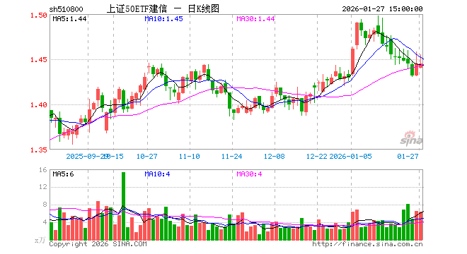 1月27日,上证50ETF建信(510800)涨0.00%,成交额914.44万元。当日份额减少100.00万份,最新份额为2.22亿份,近20个交易日份额减少1100.00万份。最新资产净值计算值为3.20亿元。
