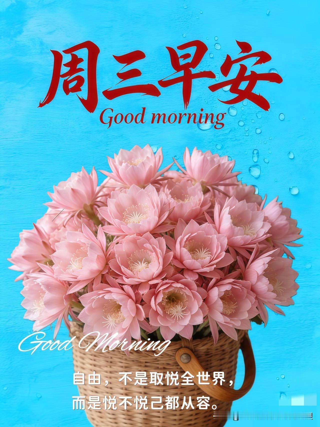 周三早安呀!愿你今天心情稳稳的,事情顺顺的,忙里也能偷点小快乐。 早上好,周三啦!愿你带着轻松的心态,把一天过得踏实又舒心。 周三早安!愿你今天被温柔对待,也能把温柔带给别人。 早上好,新的一天开始了。愿你忙而不乱,累而不烦,心里总有光。 周三早安!愿你今天遇到的都是好事,想到的都是好心情。 早上好,愿你把压力放下一点,把笑容多留一点,日子就会慢慢变好。 周三早安!愿你今天的每一步都走得踏实,每一件事都有好结果。周三 早安