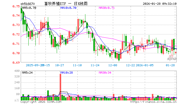 1月28日,畜牧养殖ETF(516670)开盘跌0.43%,报0.700元。畜牧养殖ETF(516670)重仓股方面,牧原股份开盘跌0.33%,海大集团跌0.16%,温氏股份跌0.20%,正邦科技跌0.30%,新希望跌0.23%,梅花生物涨0.55%,生物股份涨1.41%,大北农跌0.24%,圣农发展跌0.48%,立华股份跌0.57%。