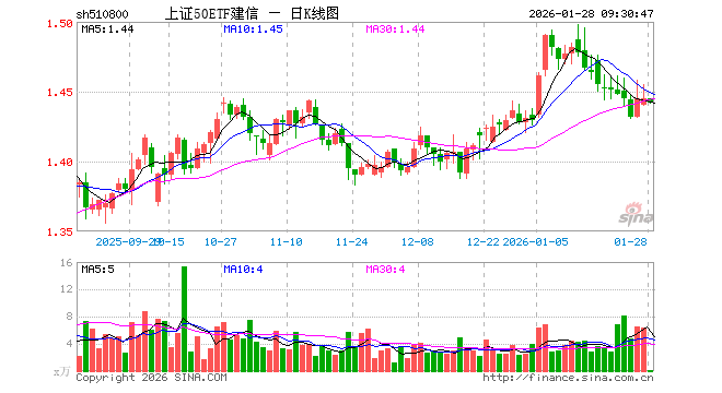 上证50ETF建信(510800)业绩比较基准为上证50指数收益率,管理人为建信基金管理有限责任公司,基金经理为薛玲,成立(2017-12-22)以来回报为44.17%,近一个月回报为0.37%。