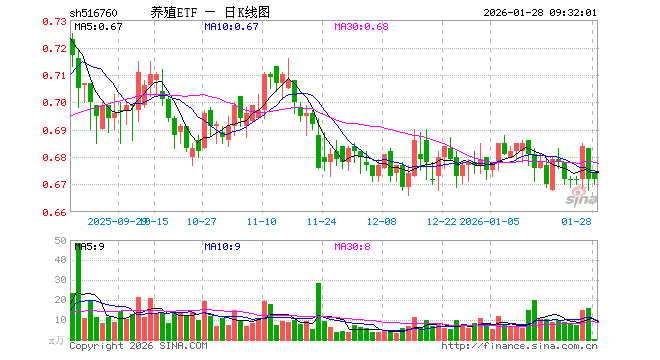 养殖ETF(516760)业绩比较基准为中证畜牧养殖指数收益率,管理人为平安基金管理有限公司,基金经理为翁欣,成立(2021-03-04)以来回报为-32.88%,近一个月回报为-0.92%。