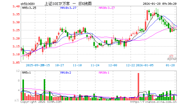 1月28日,上证50ETF万家(510680)开盘涨0.43%,报3.260元。上证50ETF万家(510680)重仓股方面,贵州茅台开盘涨0.00%,中国平安涨0.86%,紫金矿业涨1.95%,招商银行涨0.05%,兴业银行跌0.05%,长江电力涨0.00%,寒武纪涨0.69%,中信证券涨0.11%,恒瑞医药涨0.42%,工商银行跌0.28%。