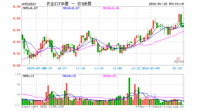 1月28日,农业ETF华夏(516810)开盘涨0.23%,报0.868元。农业ETF华夏(516810)重仓股方面,牧原股份开盘跌0.33%,温氏股份跌0.20%,海大集团跌0.16%,藏格矿业涨0.00%,盐湖股份涨1.02%,亚钾国际涨0.17%,正邦科技跌0.30%,新希望跌0.23%,梅花生物涨0.55%,扬农化工涨0.00%。