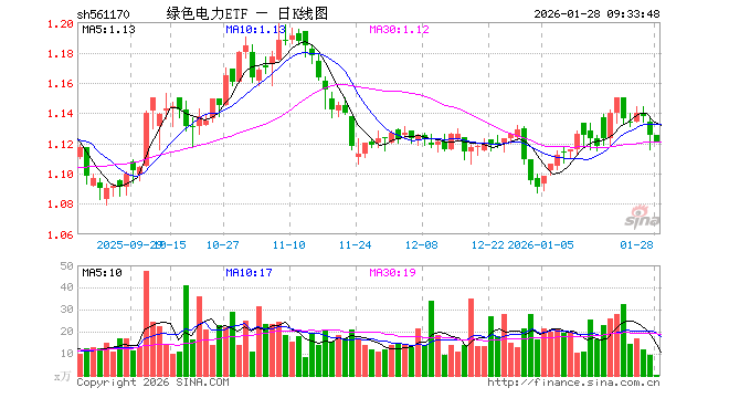 1月28日,绿色电力ETF(561170)开盘涨0.00%,报1.125元。绿色电力ETF(561170)重仓股方面,长江电力开盘涨0.00%,中国核电跌0.11%,三峡能源涨0.00%,国电电力涨0.00%,华能国际跌0.28%,国投电力涨0.00%,上海电力跌0.78%,川投能源涨0.00%,浙能电力跌0.20%,华电国际涨0.00%。