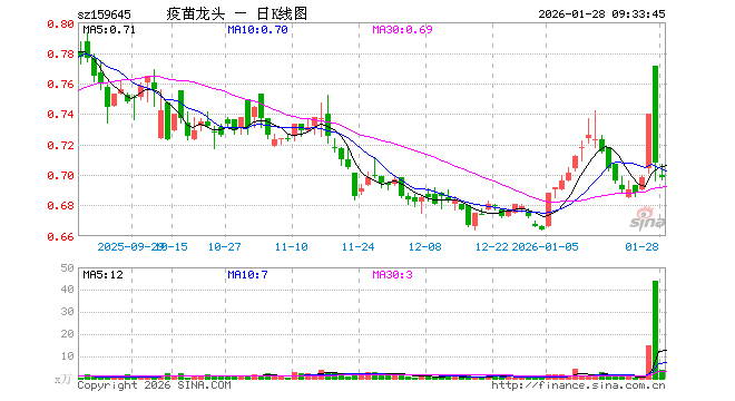 1月28日,疫苗ETF富国(159645)开盘跌1.13%,报0.700元。疫苗ETF富国(159645)重仓股方面,复星医药开盘涨0.04%,长春高新涨0.02%,智飞生物跌1.29%,沃森生物跌0.30%,万泰生物跌0.07%,华兰生物跌0.80%,昭衍新药跌0.36%,丽珠集团涨0.31%,辽宁成大跌0.16%,康泰生物跌0.78%。