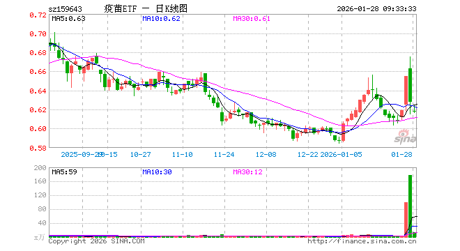 1月28日,疫苗ETF(159643)开盘跌1.59%,报0.618元。疫苗ETF(159643)重仓股方面,复星医药开盘涨0.04%,长春高新涨0.02%,智飞生物跌1.29%,沃森生物跌0.30%,万泰生物跌0.07%,华兰生物跌0.80%,昭衍新药跌0.36%,丽珠集团涨0.31%,辽宁成大跌0.16%,康泰生物跌0.78%。