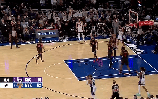 虎扑01月28日讯NBA常规赛,国王客场挑战尼克斯的比赛正在进行中,目前上半场结束国王以51-52落后尼克斯。