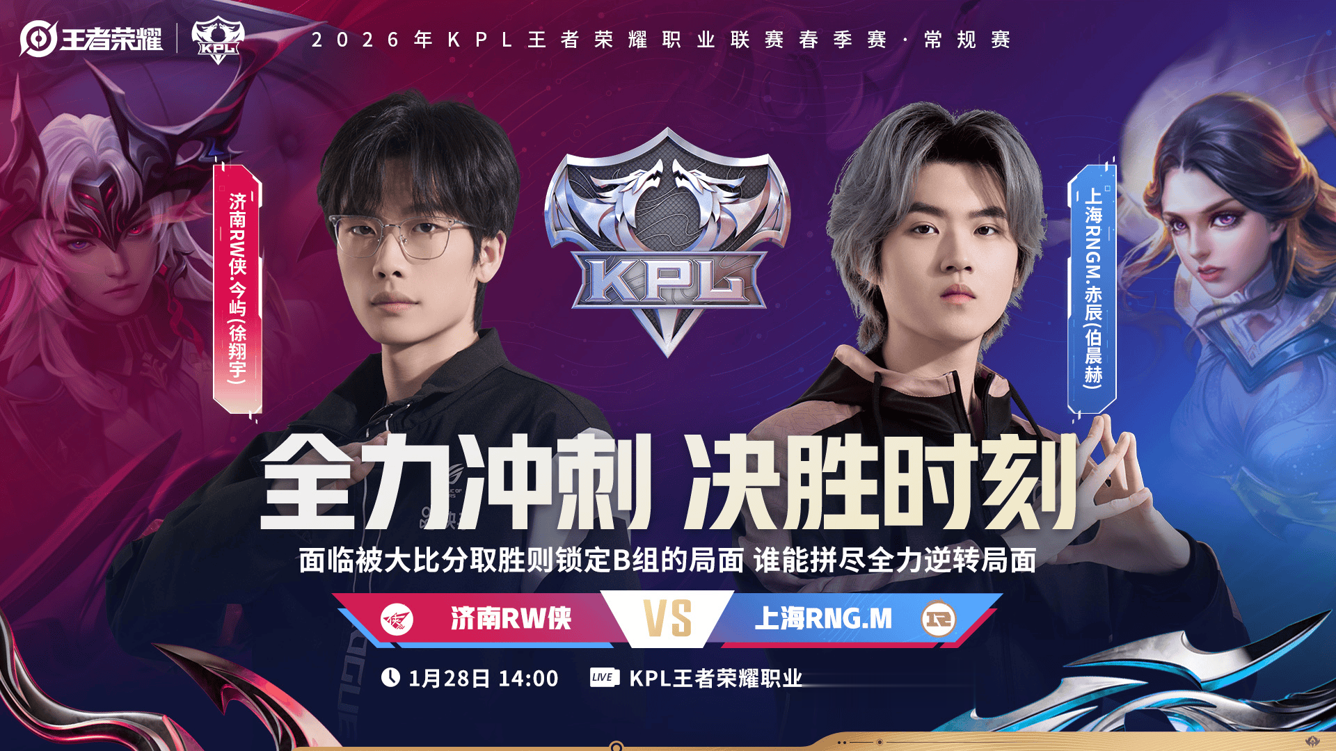 14:00济南RW侠vs上海RNG.M(二组,上海)