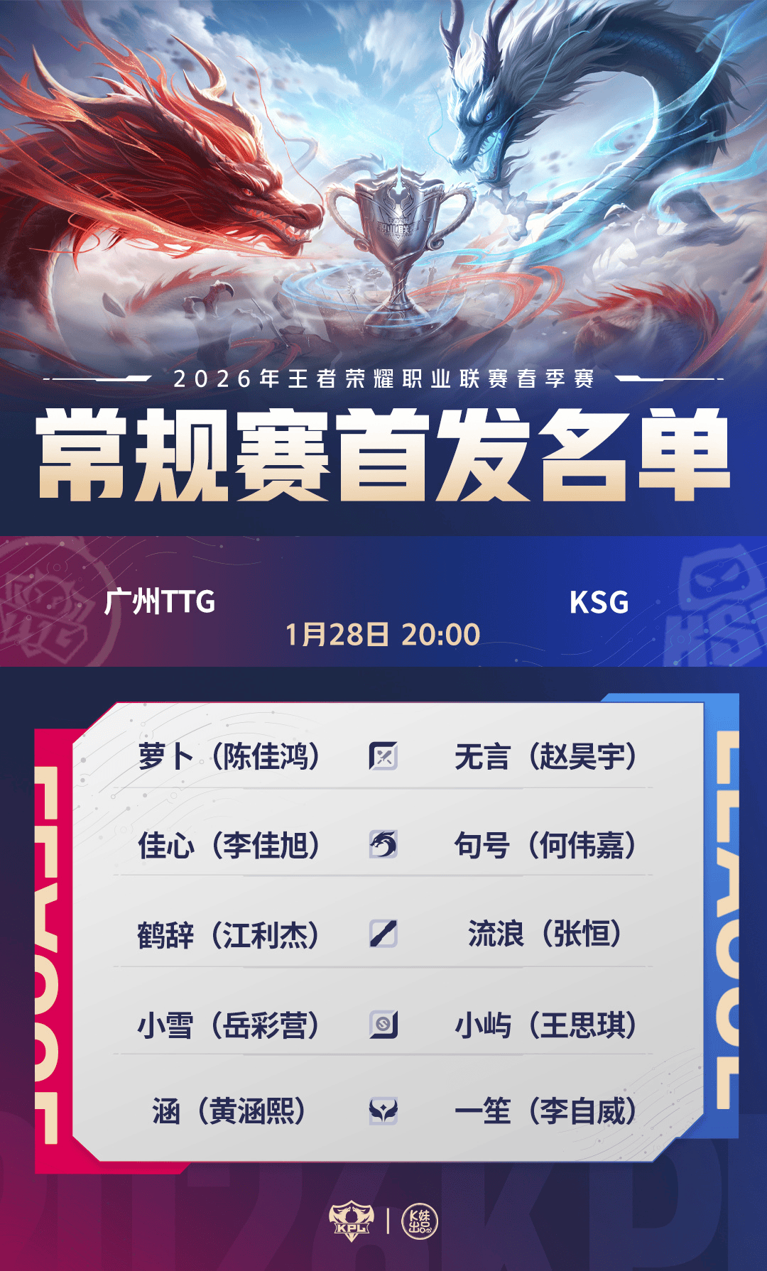 2026KPL春季赛常规赛第一轮W3D1[首发名单]送达!