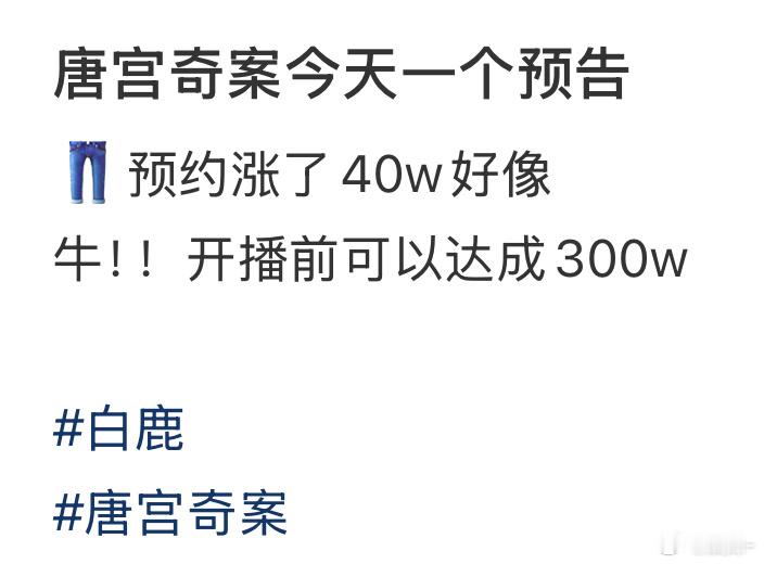 唐宫奇案不用开播前,今天就能涨到300万,还有物料