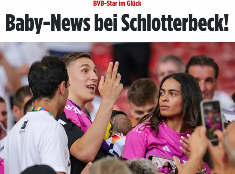 施洛特贝克和萨布丽娜在2023年11月迎来第一个孩子,当时多特蒙德高层瓦茨克在俱乐部会员大会上宣布了这一喜讯,他说道:“施洛特贝克本周成为了父亲,衷心祝贺你和你的女友。”