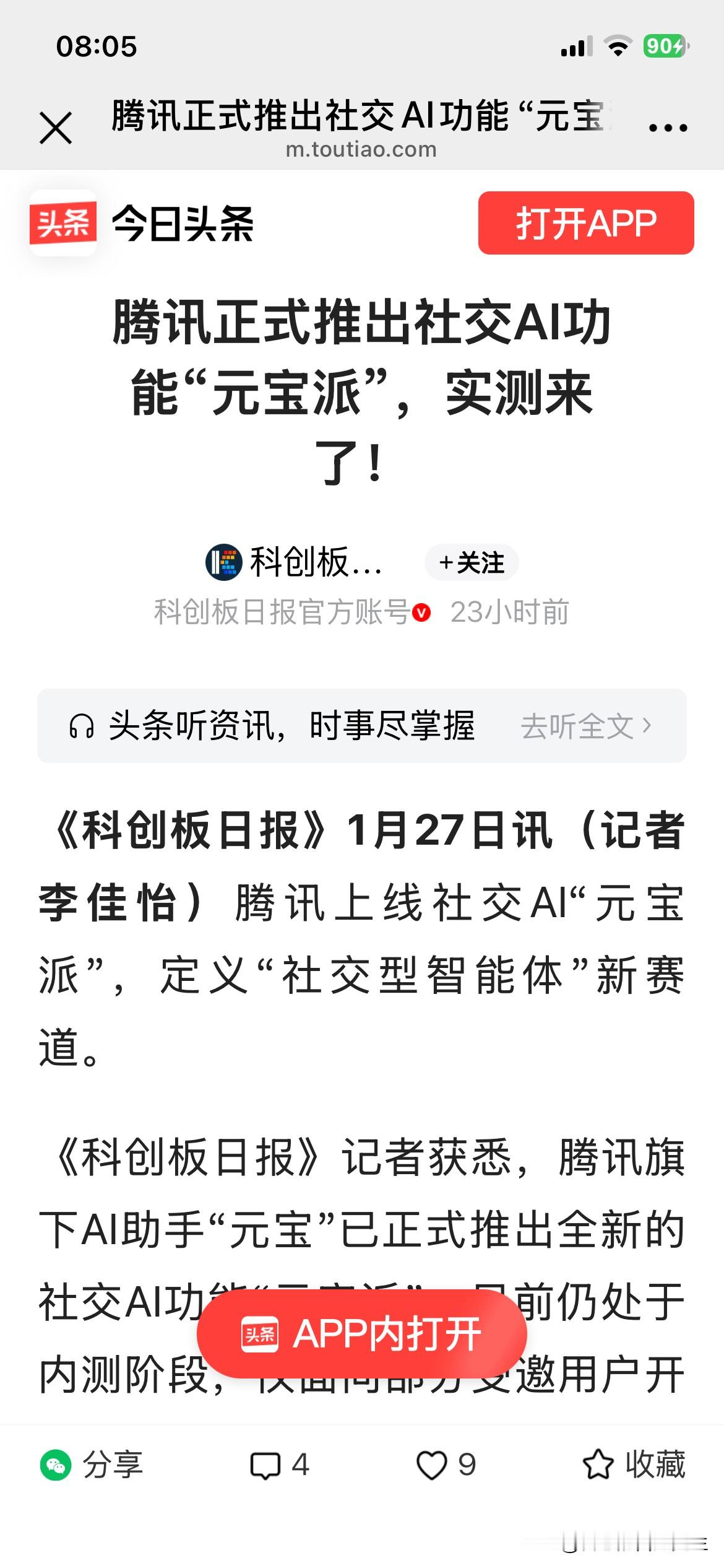 元宝近期获10亿红包推广和社交功能重押,标志着腾讯在AI上从“稳扎稳打”转向“主动强攻”。目的是抢占AI时代的新入口,并通过应用反哺自研大模型能力。