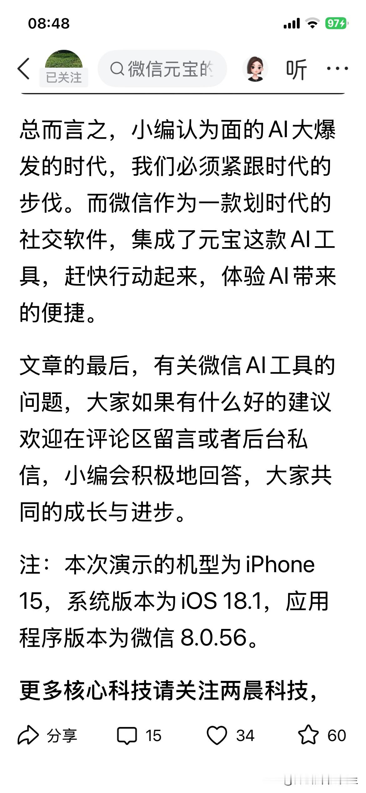 · 微信AI功能的“试验田”:许多新功能(尤其是社交相关)先在元宝上测试,成熟后再融入微信。