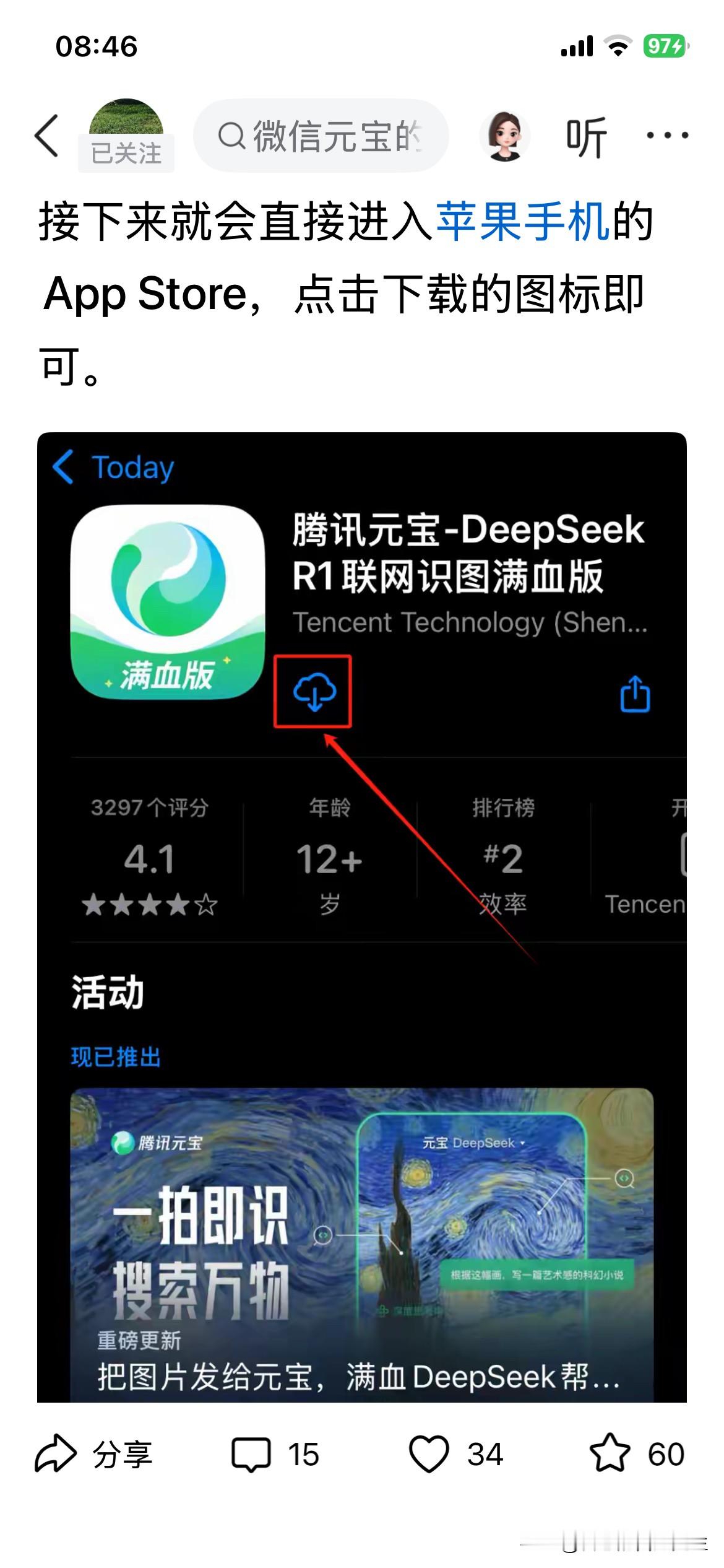 · 下载:在手机官方应用商店搜索“腾讯元宝”下载。通过腾讯“应用宝”应用市场也可以获取。