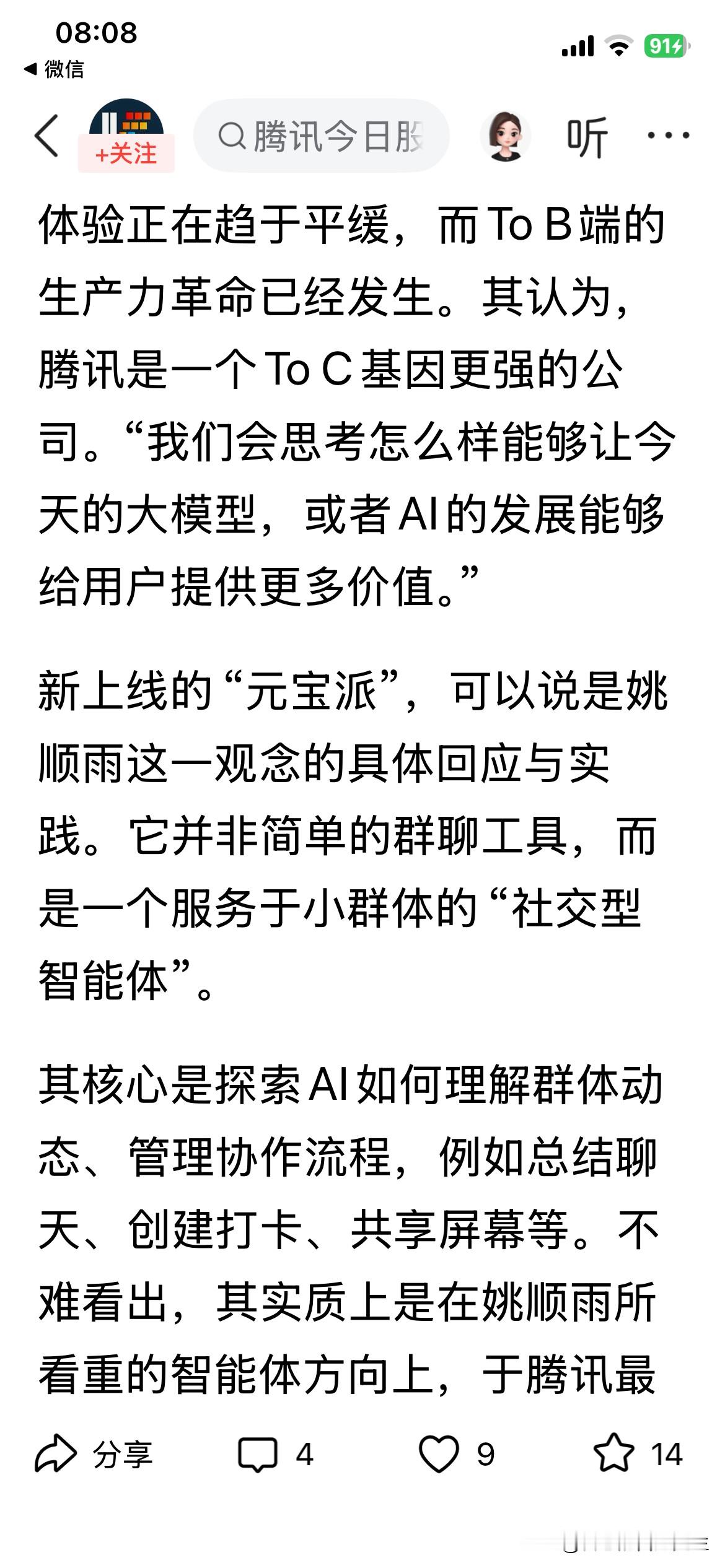 总而言之,腾讯元宝正处在关键转折期。它不再只是一个AI工具,更是腾讯在AI时代用自己最擅长的“社交”来破局的一次重要实验。