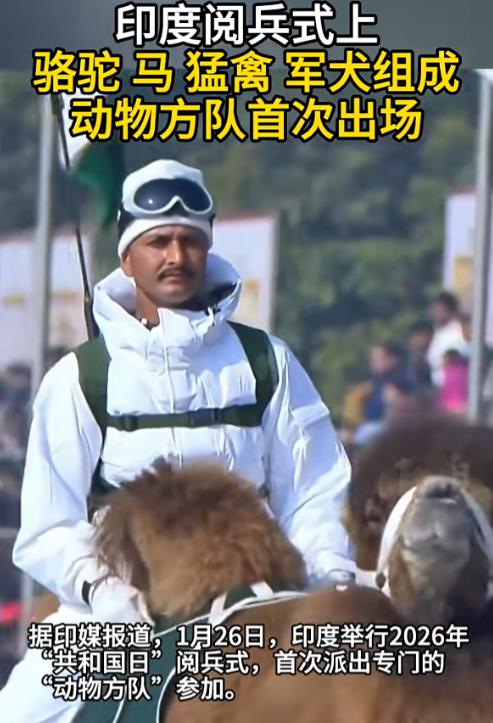 只有想不到, 没有印度做不出的荒唐事! 1月26日外媒爆料,印度最新阅兵式竟首次亮出“动物方队”,双峰骆驼、矮种马、猛禽、军犬齐上阵,活脱脱一场马戏团巡演。 1 月 26 日的印度新德里卡尔塔维亚大道,全场的目光被一支从未现身的队伍牢牢勾住,印度阅兵,竟首次亮出了专属的 “动物方队”。 直接让围观的外媒和网友看呆了眼。礼炮的余音里,双峰骆驼迈着沉稳的步子走在最前,身后跟着身形小巧的矮种小马。 空中有鹰隼类的猛禽盘旋随行,方阵末尾是 16 只昂首挺胸的军犬,整支队伍踩着军乐的鼓点整齐行进,空中的猛禽时而低空滑翔,地上的军犬步调丝毫不乱。 这场亮相的动物方队,不是印度临时拼凑起来凑数的,每一种动物都是从军队里精挑细选出来的,就连出场的顺序和阵型,都经过了许久的彩排训练。 走在方队最前头的是巴克特里亚双峰驼,这是印度拉达克地区陆军部队的老搭档,身形高大的骆驼身上披着适配阅兵的装饰,一步步走得稳当,它们能在高海拔极端环境里大展身手的好手。 能耐受零下 30 摄氏度的极寒,也能适应海拔 4500 米以上的缺氧环境,负重能力更是惊人,最多能扛着 200 多公斤的物资在沙漠戈壁里长途行进。 紧随骆驼之后的是赞斯卡矮种马,这是拉达克地区的特有品种,身高不足 1.4 米,在高大的骆驼和士兵身旁显得格外小巧,可它们却是锡亚琴冰川前线的 “冰川生命线”,能在 60 度的陡峭冰坡上稳健行走。 空中的猛禽是这场动物方队里的独特风景,四只鹰隼类猛禽在方队上空盘旋,飞行的轨迹始终跟随着地面队伍,它们隶属于印度空军的鸟击防治单位,日常的核心任务就是在军用机场驱赶鸟群。 单只金雕一天就能清场 3 个军用机场的空域,驱离野鸟超 300 只,让新德里空军基地的鸟击事故率从每年 15 起骤降到 3 起。 方队压轴的 20 只本土军犬更是全员 “尖子生”,12 只穆德拉犬 8 只拉贾帕拉姆猎犬,彻底取代了之前的德牧、马犬等外来品种,全是为印度本土气候和地形量身打造的 “反恐尖兵”。 想成为这支部队的一员,得先过 9 项严苛考核,从爆炸物识别到高原适应,从追踪侦察到反恐突击,哪一项不达标都得被淘汰,整体淘汰率高达 45%,能上场的全是百里挑一的狠角色。 这些军犬入伍后会拥有专属的军籍编号,享受印军统一的饲养经费,单只穆德拉犬能识别 28 种不同类型的爆炸物气味,探测距离最远能到 150 米。 2025 年克什米尔的一次反恐行动中,3 只军犬仅凭气味就找到隐藏在墙体中的爆炸装置,直接避免了整支巡逻队的伤亡。 印度阅兵一直都非常的有“看点”,动物方队只是印度今年的新花样,摩托特技才是他们多年来的 “祖传整活绝技”,今年更是直接玩出了新高度。 今年拿出了男女兵双阵容的豪华配置,骑的全是印度本土生产的皇家恩菲尔德 500CC 重型摩托车,车身还经过了专业的平衡改装。 除了经典的人塔,队员们还秀了倒骑车看报纸、四车编队托举倒立等神操作,甚至用 11 辆摩托车摆出孔雀开屏的造型。 当然,印度阅兵也不全是整活,硬核的军事装备展示依旧是重头戏,今年还首次采用了 “实战化战斗序列”,把阅兵场变成了模拟战场。 分侦察、打击、支援三个阶段依次展示,但就在这硬核的钢铁洪流过后,画风又突然切换到了民俗狂欢。 从 1950 年第一次举办共和国日阅兵开始,印度就把这场国家级庆典打造成了自己的特色舞台,77 年来,从摩托特技的不断升级,到如今动物方队的惊艳亮相,印度总能在阅兵里玩出别人想不到的花样。 在印度的共和国日阅兵上,你永远不知道下一个登场的是踩着鼓点的动物,还是玩着高难度特技的摩托车手,也正是这些千奇百怪的场面,让印度的阅兵成了全世界最具辨识度的阅兵之一。 对于这件事,您有什么想说的吗?欢迎评论区留言讨论。 信源:红星新闻2026-01-26——《印度“共和国日”阅兵式首次派出“动物方队”,包括双峰骆驼、矮种小马及猛禽等动物》
