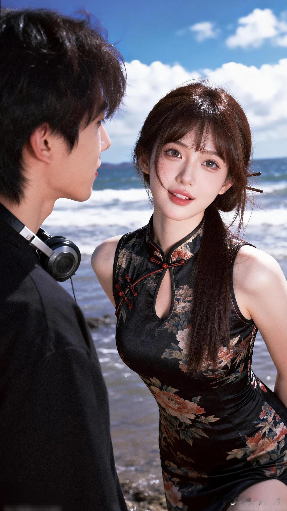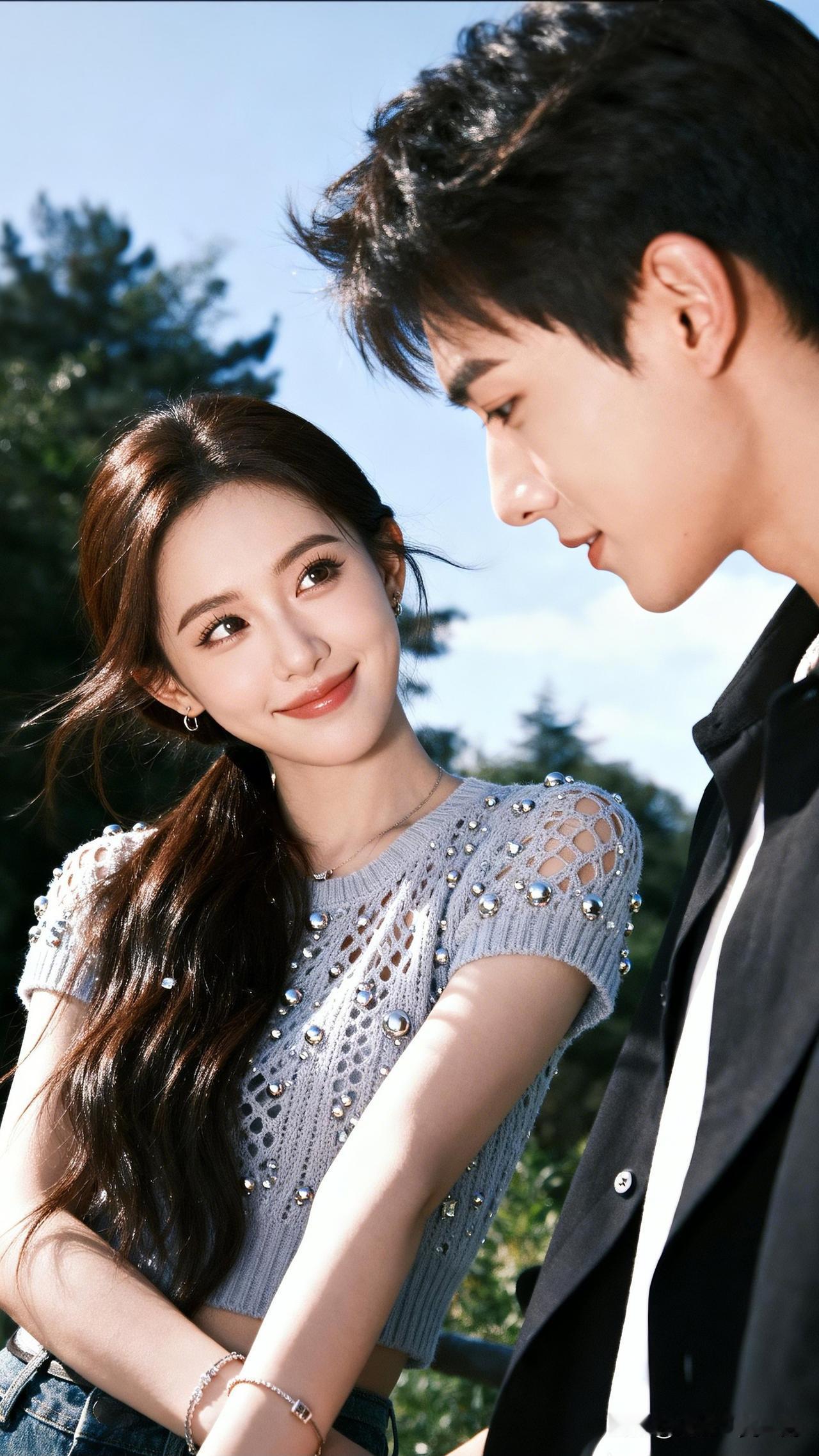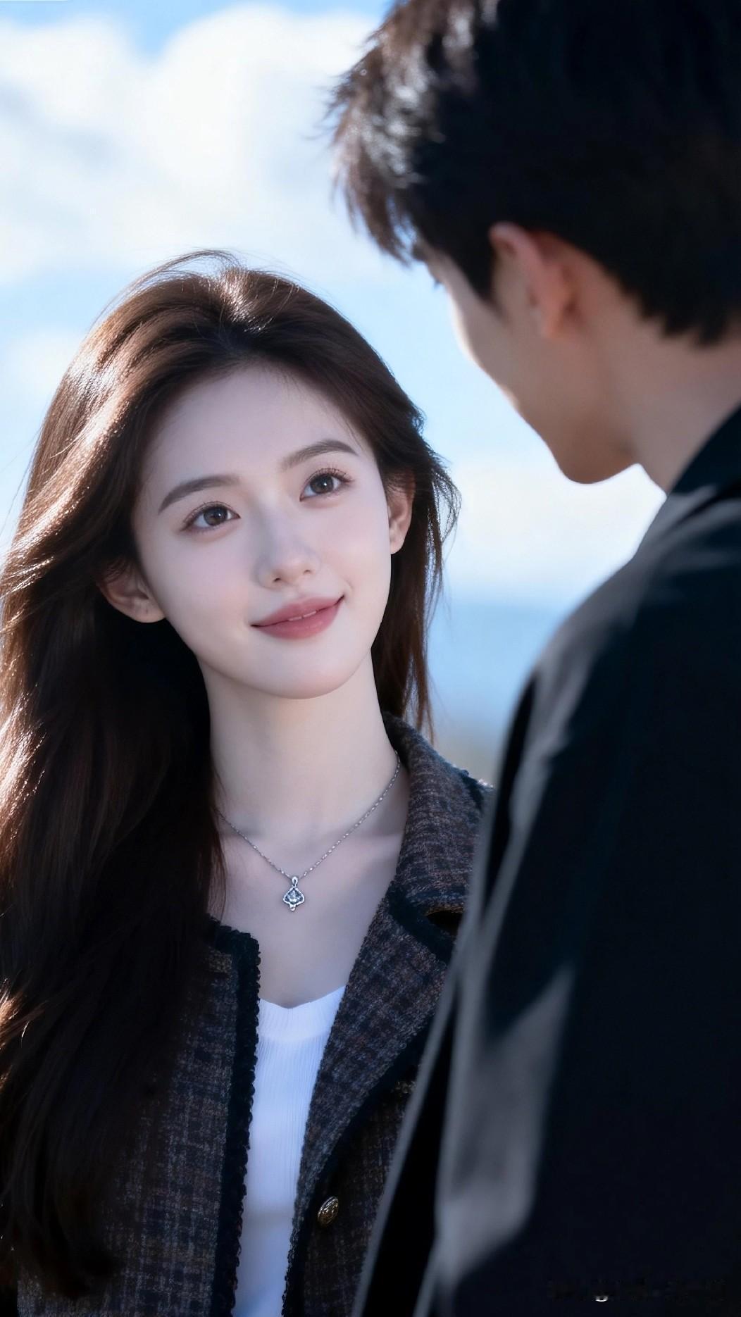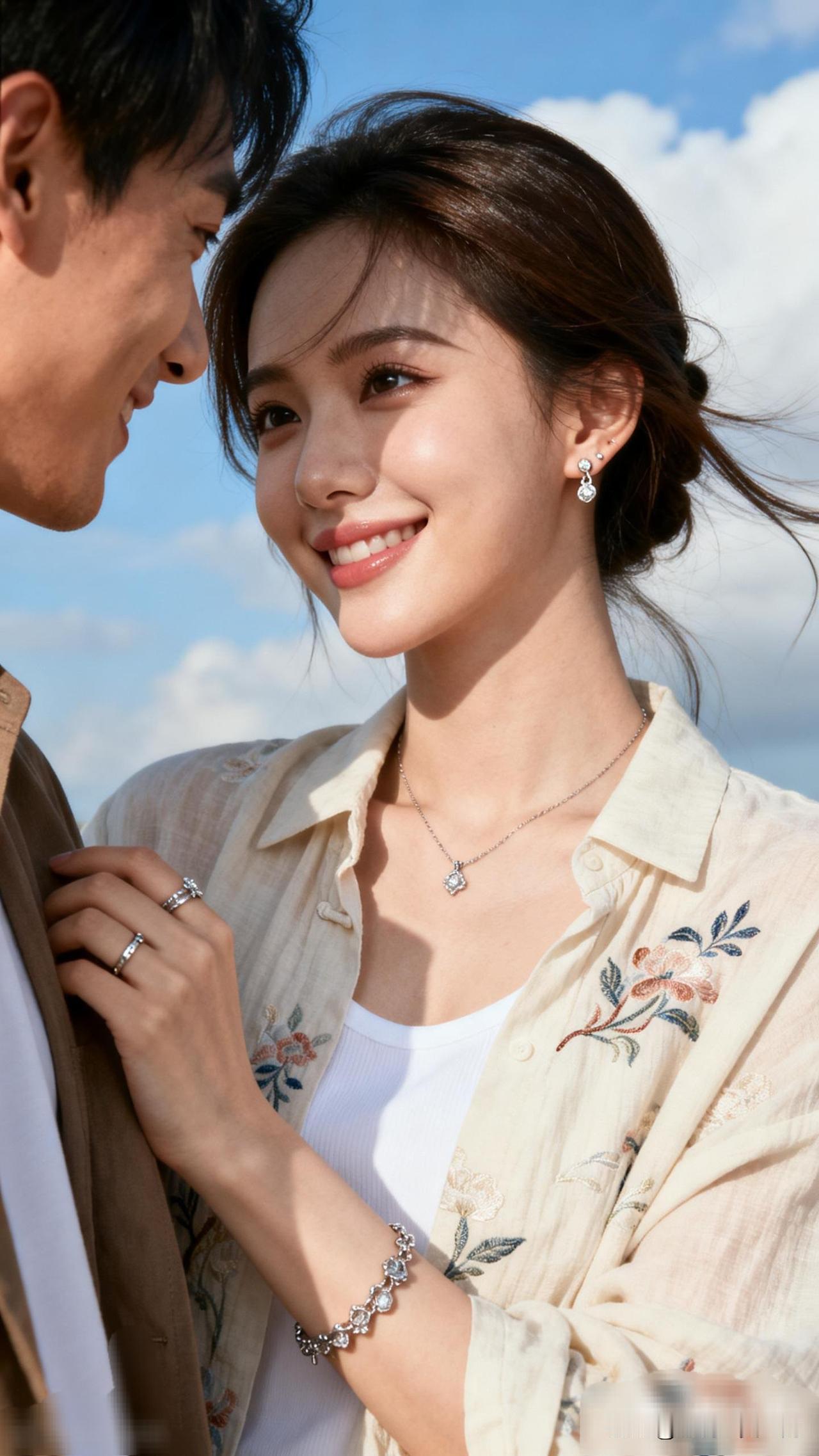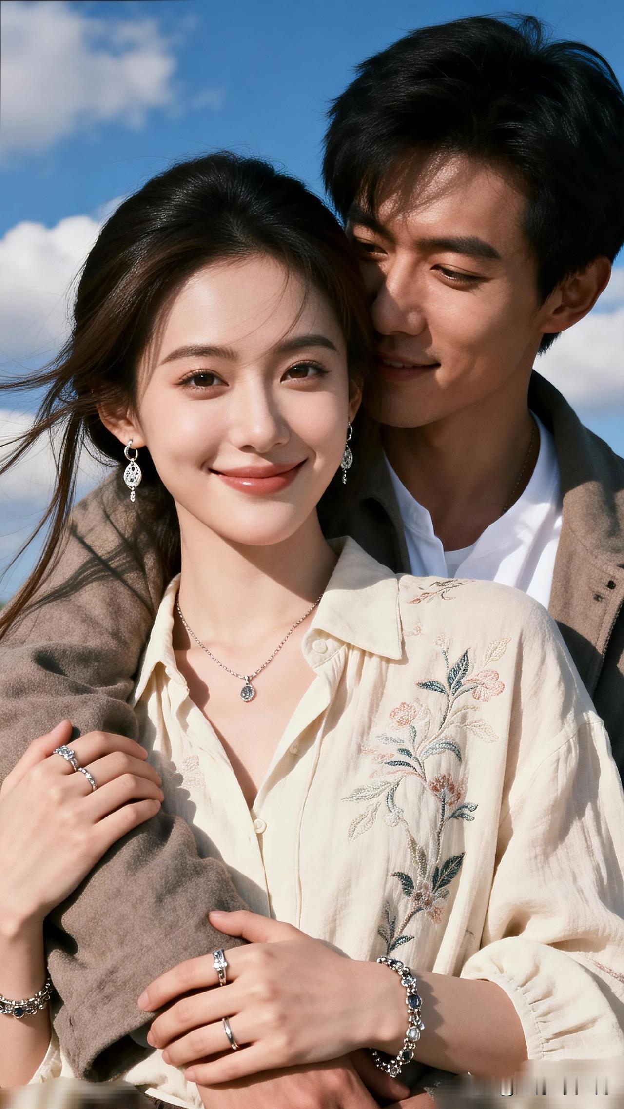 甜蜜情侣照,蓝天白云下的浪漫瞬间