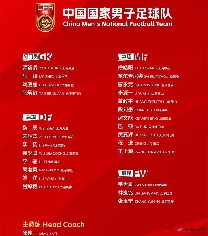 邵佳一作为国足主帅的第一期集训选将范围是在剔除U23国足踢亚洲杯集训外的“适龄”队员(多是曾经的老国脚,也有几名首次入选的队员),邵佳一带的国家队三场热身赛,质量颇好,也踢出了信心所在,让球迷振奋,后续的“邵二期集训”大概会招入从U23亚洲杯得亚军的队员中选择状态好的小将补充进成年国足,国足主帅也给出了标准(得从联赛中出场且有稳定持续好的状态才有可能!)看在联赛中的表现,因为国家队的球员大部分都来自国内联赛,联赛中有稳定而出色的状态,这才是国家队的基础!