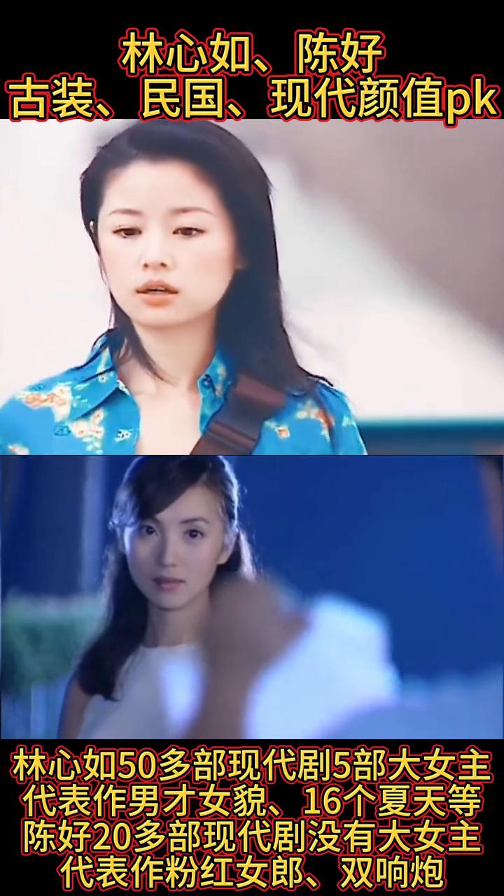 林心如、陈好古装、民国、现代颜值pk。 微邦娱乐。 ·林心如30多部古装,5部大女主,经典角色紫薇、窦漪房、建宁公主等。 ·陈好20多部古装没有大女主,经典角色貂蝉、阿紫等。 ·林心如50多部现代剧5部大女主,代表作半生缘、情深深雨蒙蒙。 ·陈好10几部民国剧没有大女主,代表作宅门逆子、纸醉金迷。 ·陈好20多部现代剧没有大女主,代表作粉红女郎、双响炮。 ·陈好20多部现代剧没有大女主,代表作贵妃醉酒。 ·陈好20多部现代剧没有大女主,代表作云起花落。 ·陈好20多部现代剧没有大女主,代表作有男孩子夸奖我也不在乎。