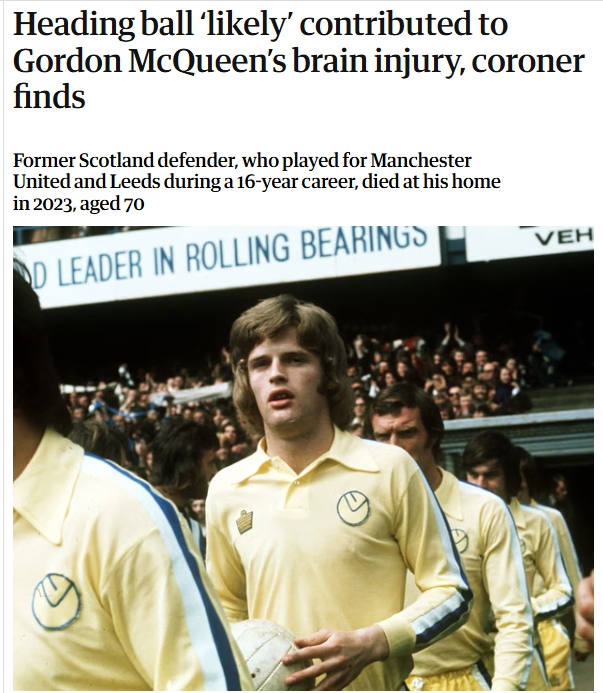 直播吧01月28日讯苏格兰名宿,曾效力曼联的戈登·麦奎因于2023年6月去世,享年70岁。今日,有关麦奎因死因的研究中揭露,长期头球很可能导致了麦奎因的脑损伤。