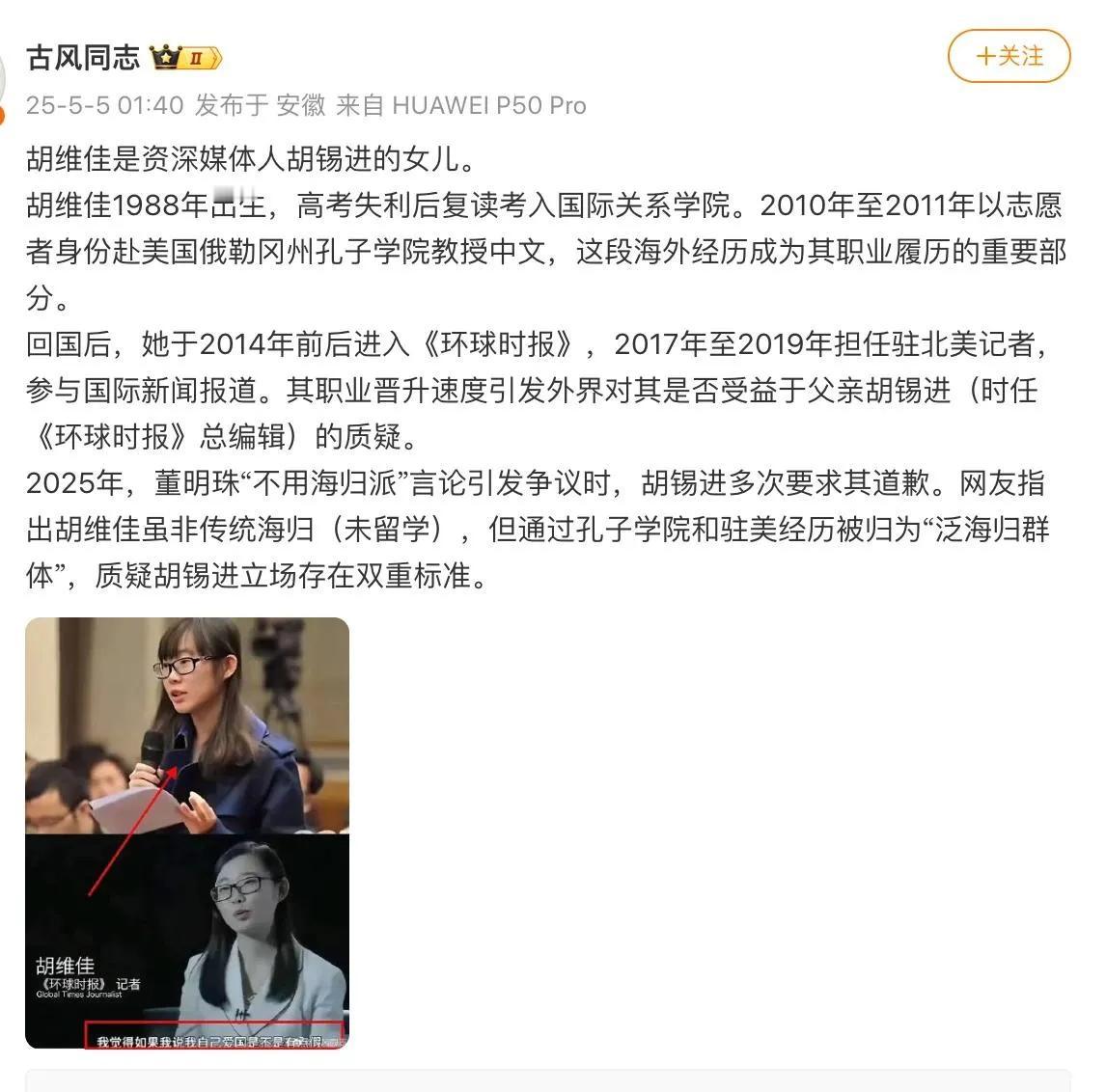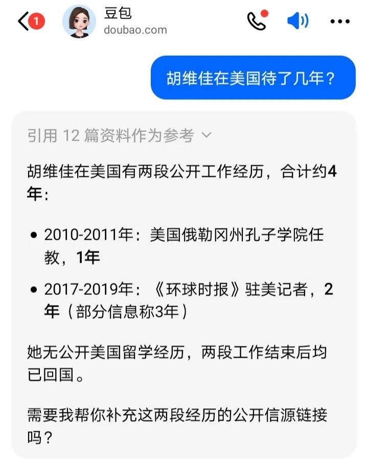 网传胡锡进女儿曾留学美国,胡锡进在辟谣时竟然出现严重漏洞,这是怎么回事呢? 原来牢A披露了部分女留学生在美国生活不检点,使得网友纷纷调侃胡锡进的家人,比如“黑能进,白能进,胡锡不能进”等等。 为此胡锡进公开辟谣,老胡声称其女儿“只在美国孔子学院工作过一年,她没有留学经历”。 可是网友们指出胡锡进的女儿实际上有两段旅美经历,除了在孔子学院的一年之外,还有进入环球时报后的两年驻美外派经历。这样加起来一共在美国工作了三年。 又据豆包考证,胡锡进的女儿在美国有两段公开工作经历,总计在美国的居住时间约3年或者4年。 那么胡锡进的辟谣只算其女儿在美国一年,但实际情况却是3年到4年,由此推论,老胡的辟谣有几分可信度呢?