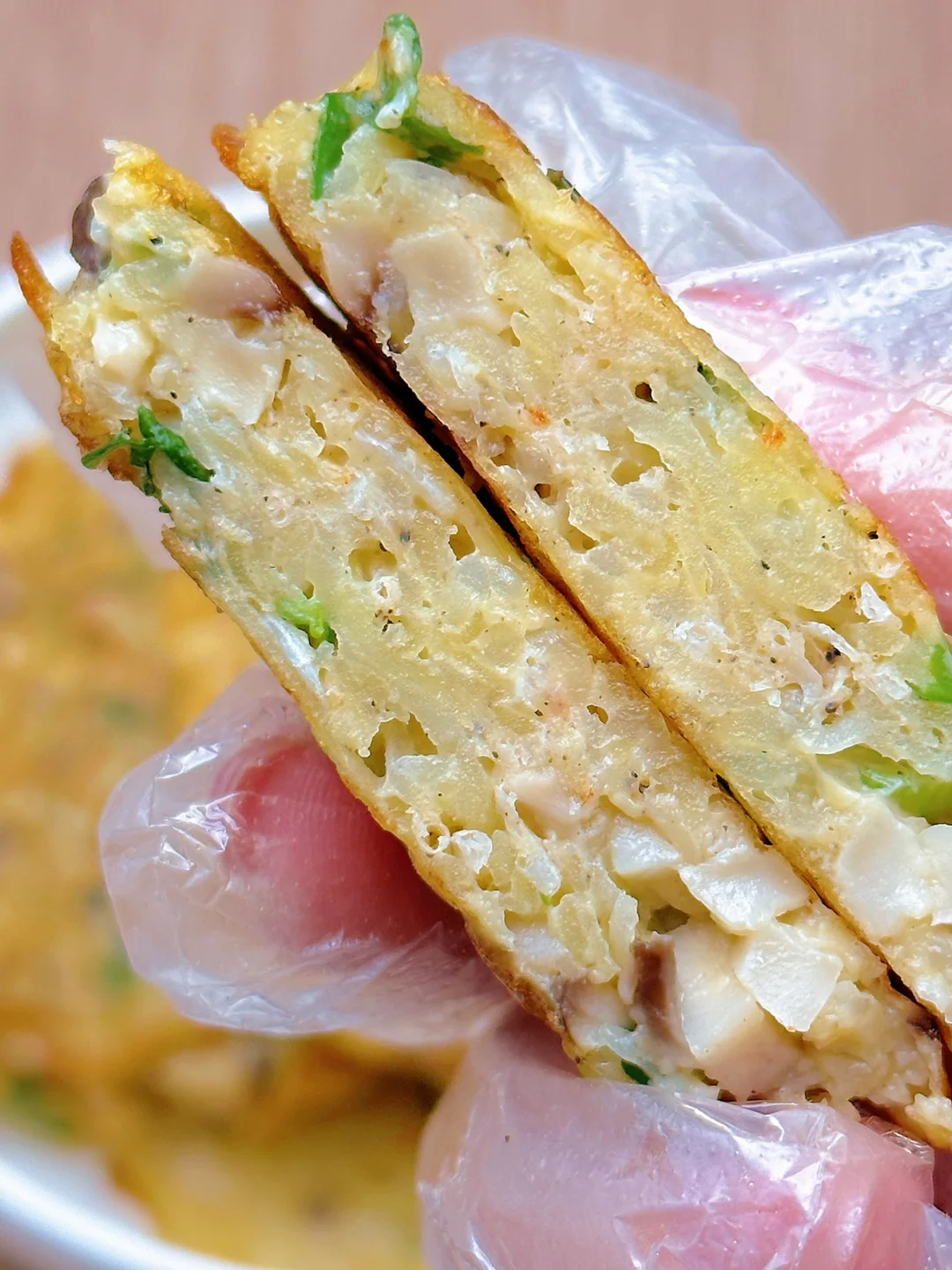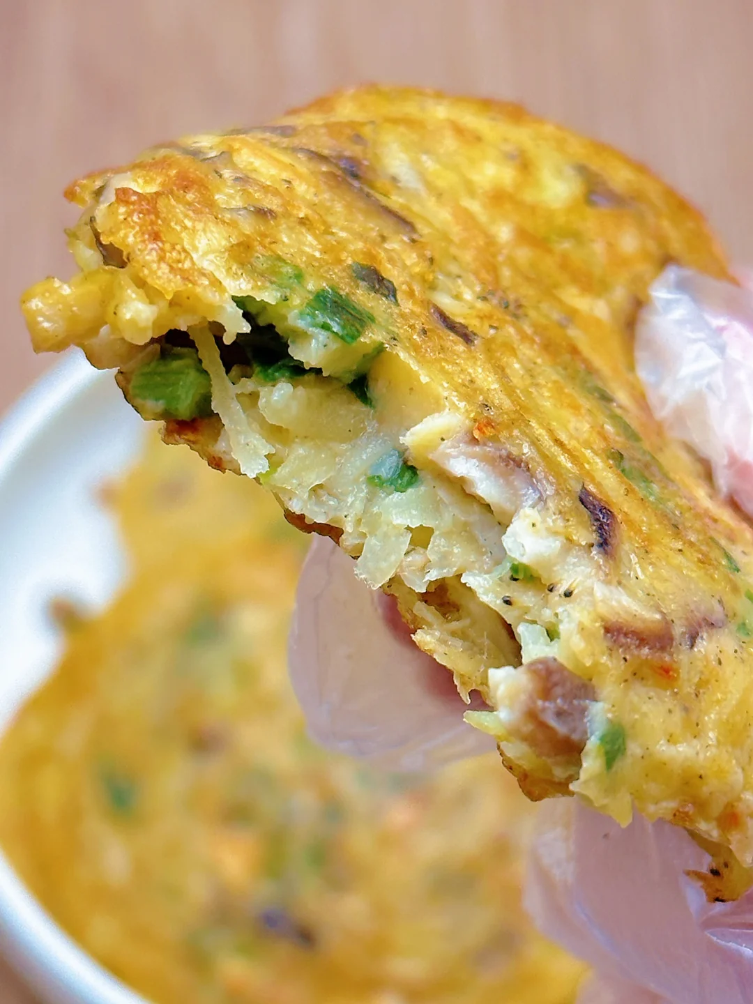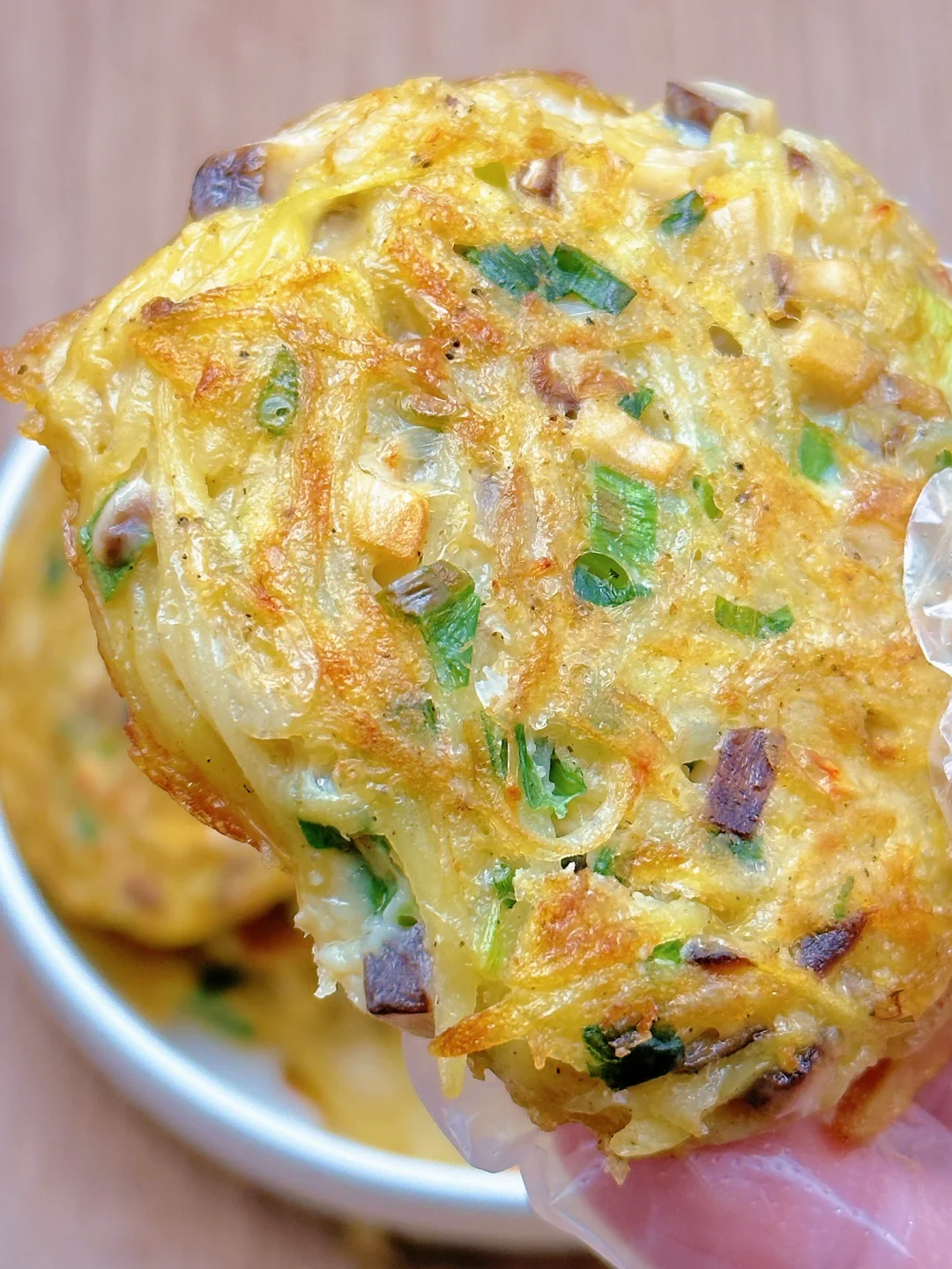 🥗食材:虾皮、土豆、香菇、葱花、淀粉、鸡蛋