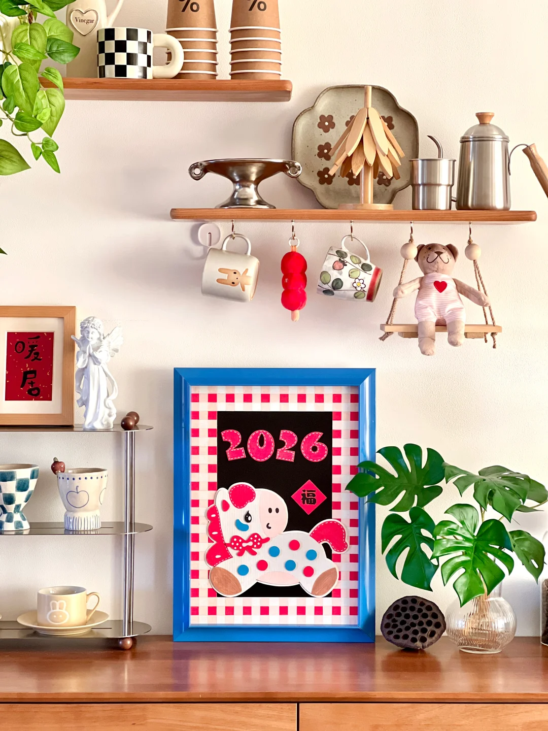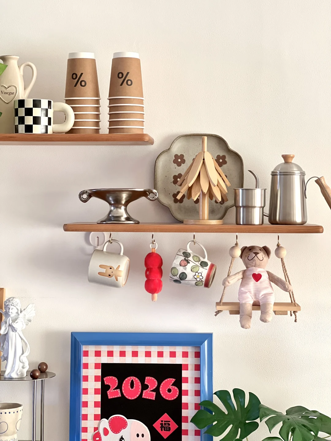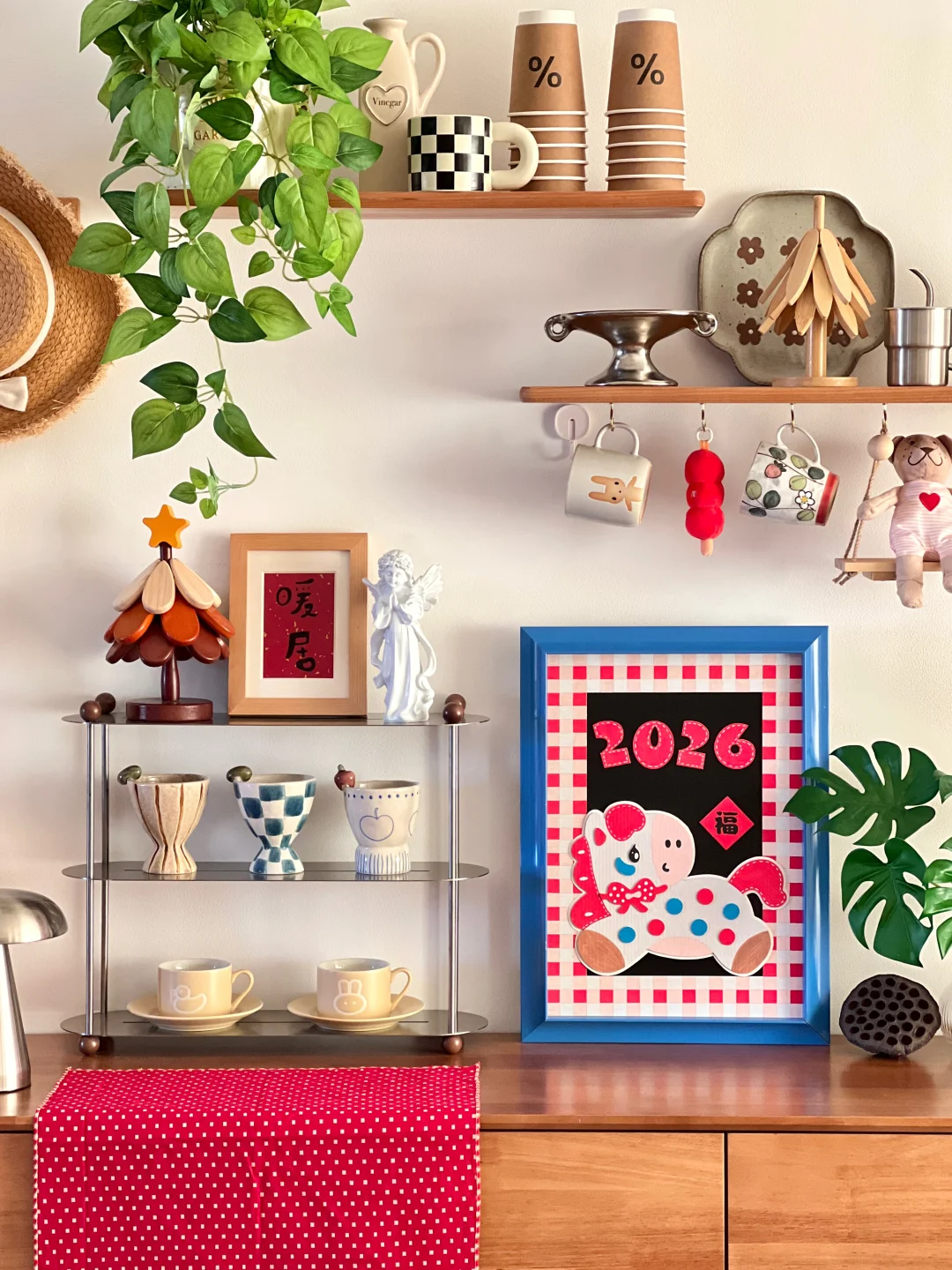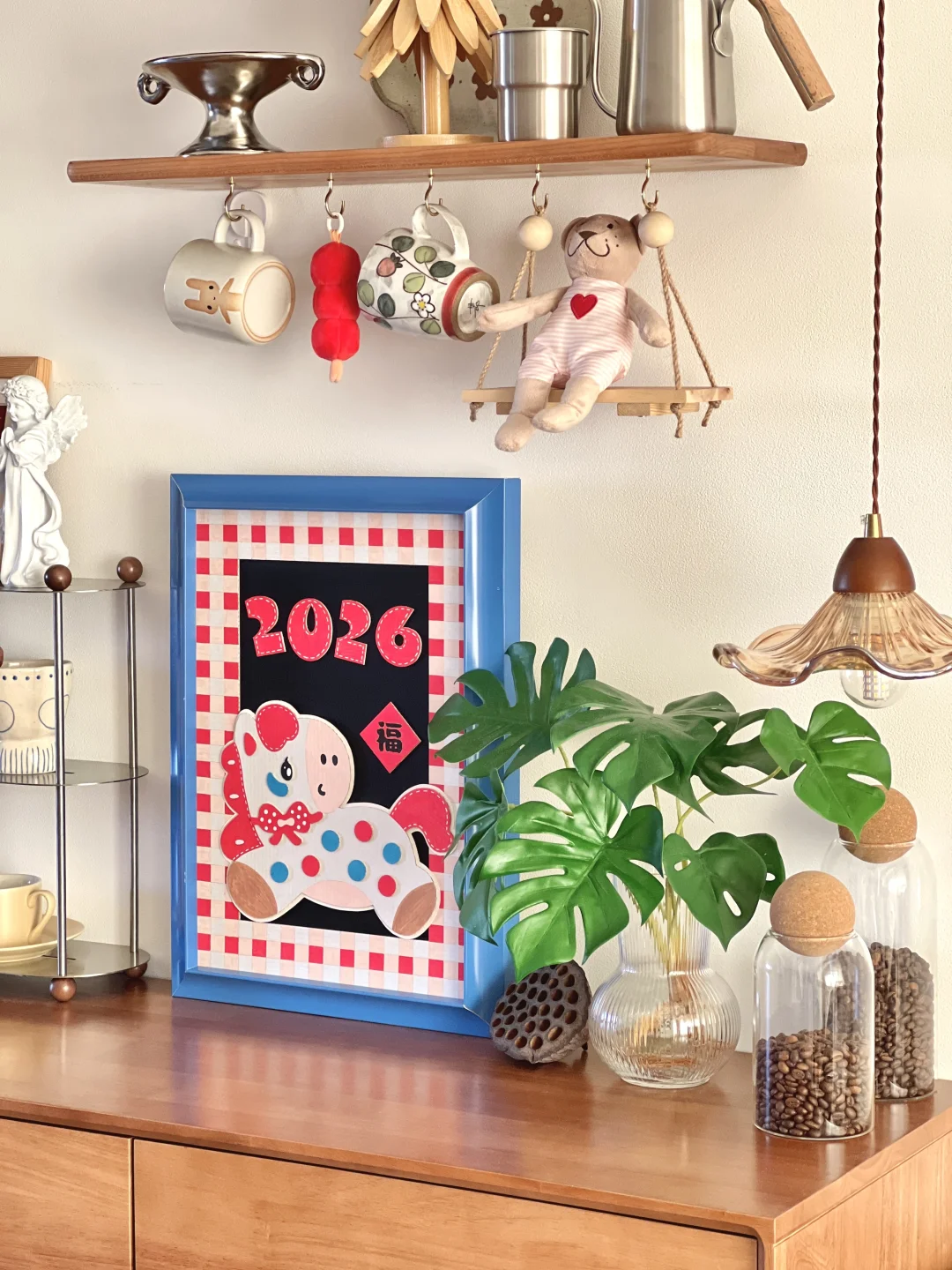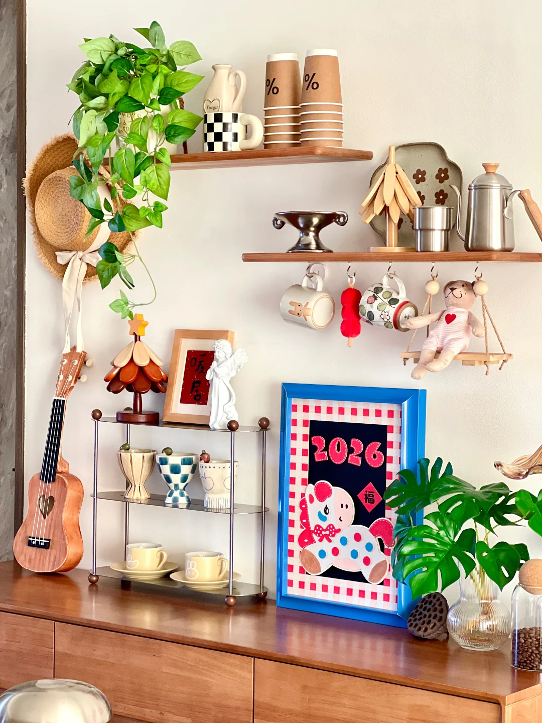 把1平米的大白墙鼓捣成了咖啡角🎉最近给我的小角落做了“丰容升级” [星R]DIY了一幅马年装饰画! 选了实木画框来装裱,红色格纹+软萌小马。 红蓝的配色,复古又活泼,摆在咖啡角一下就成了视觉焦点。实木边框很有温度~ [星R]焕新了轻巧的金属杯架! 咖啡角的收纳也全靠它,分层设计能把我的杯子、小摆件都安排得明明白白。 它承重力强又不占地方,台面瞬间清爽了,拿杯子也更方便。 家的丰容,从来不是买最贵的东西,而是把日常小角落变成能治愈自己的能量场。 新的一年,愿我们都能在这些被用心填满的小角落里,收获稳稳的幸福和松弛感✨