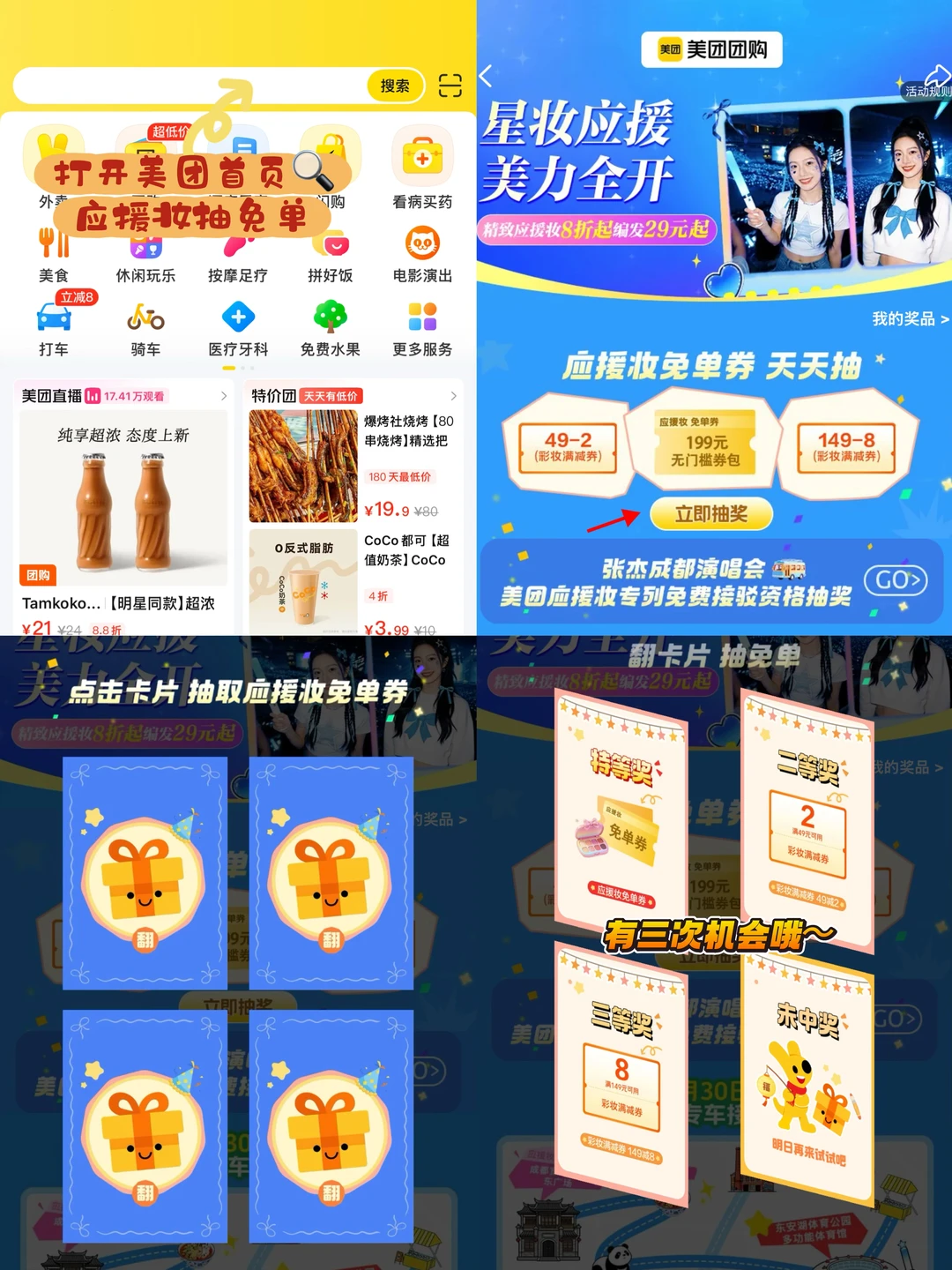 搜“应援妆抽免单”→领券→预约化妆→坐专车→美美见杰哥!!