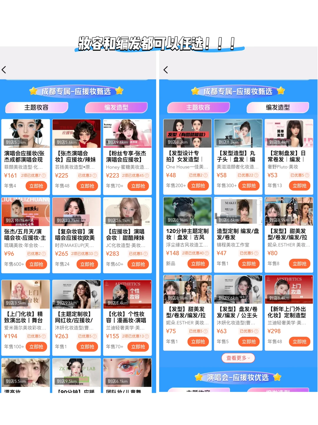 精致应援妆 8折起,编发 29元起…