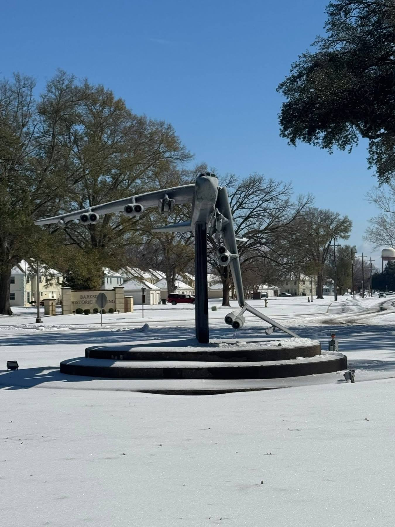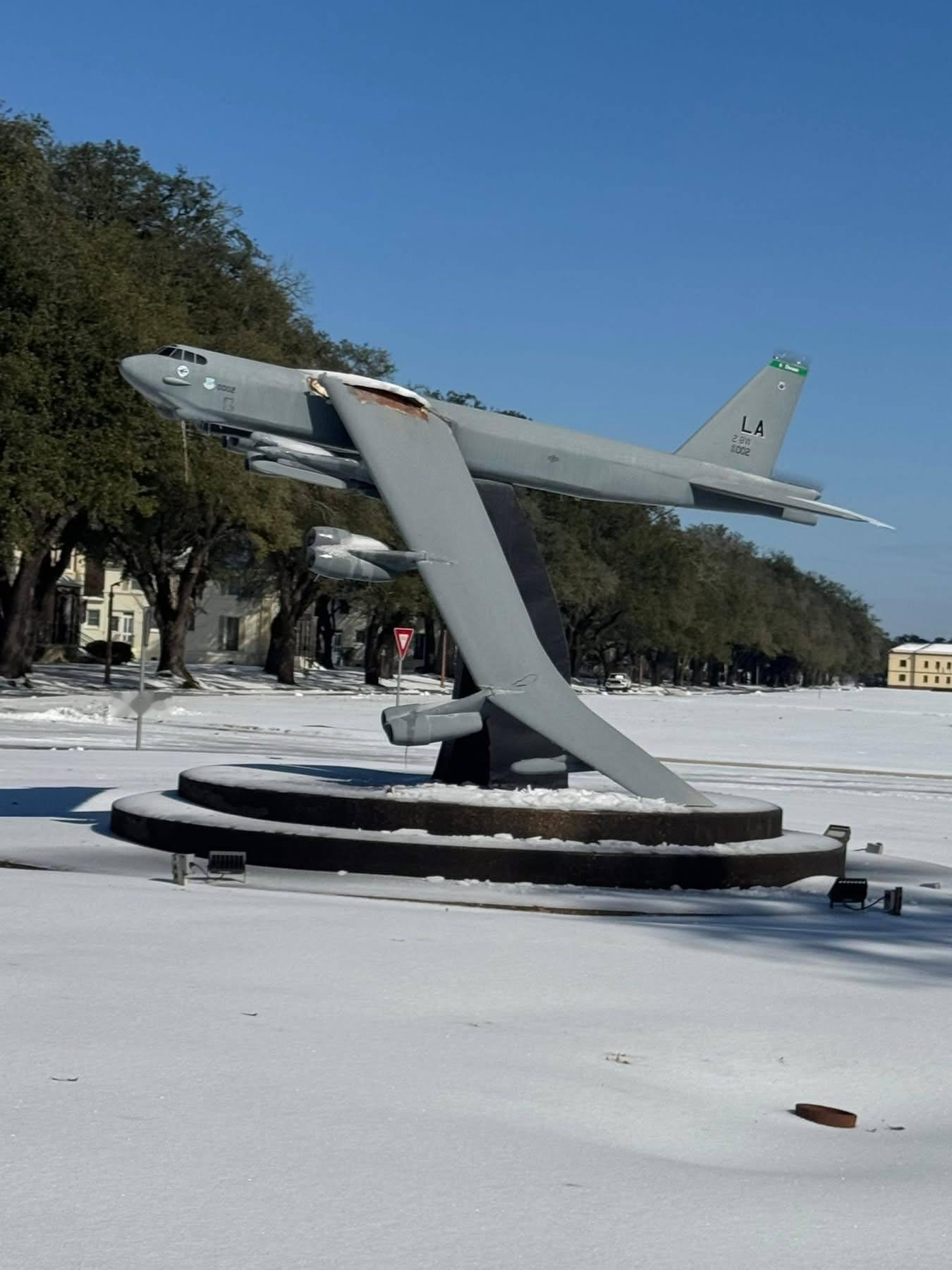 美军傻事 美国路易斯安那州巴克斯代尔空军基地的B-52轰炸机模型年久失修损坏,阿拉斯加州埃尔蒙多夫-理查森联合基地附近道路因为暴风雪导致无法通行。