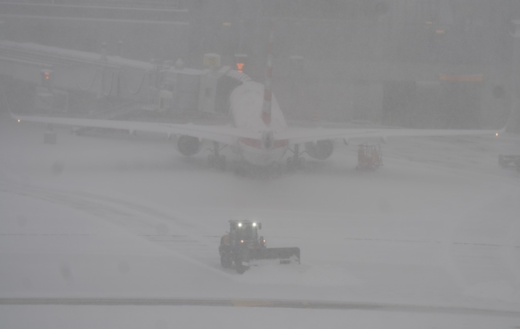 1月25日,铲雪车在美国纽约拉瓜迪亚机场清理积雪。
