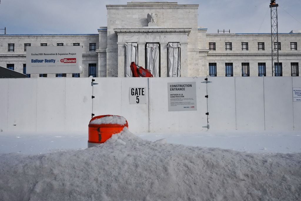 1月26日,美国华盛顿,美联储大楼被积雪覆盖。