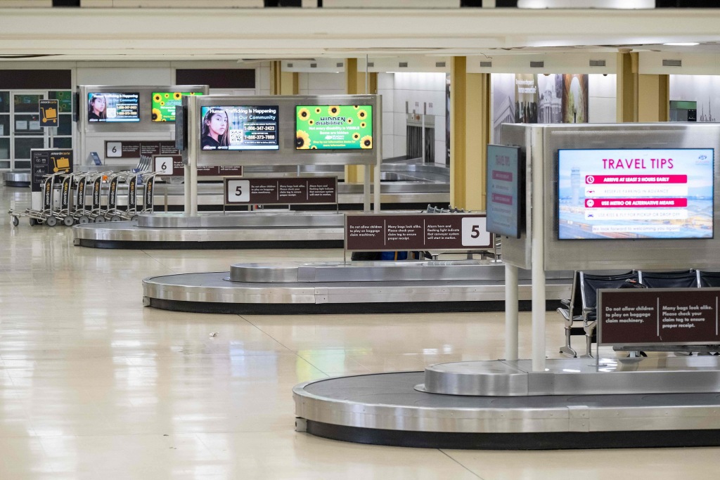 1月26日,美国弗吉尼亚州阿灵顿,罗纳德·里根华盛顿国家机场,航班延误或取消,行李提取区空无一人。