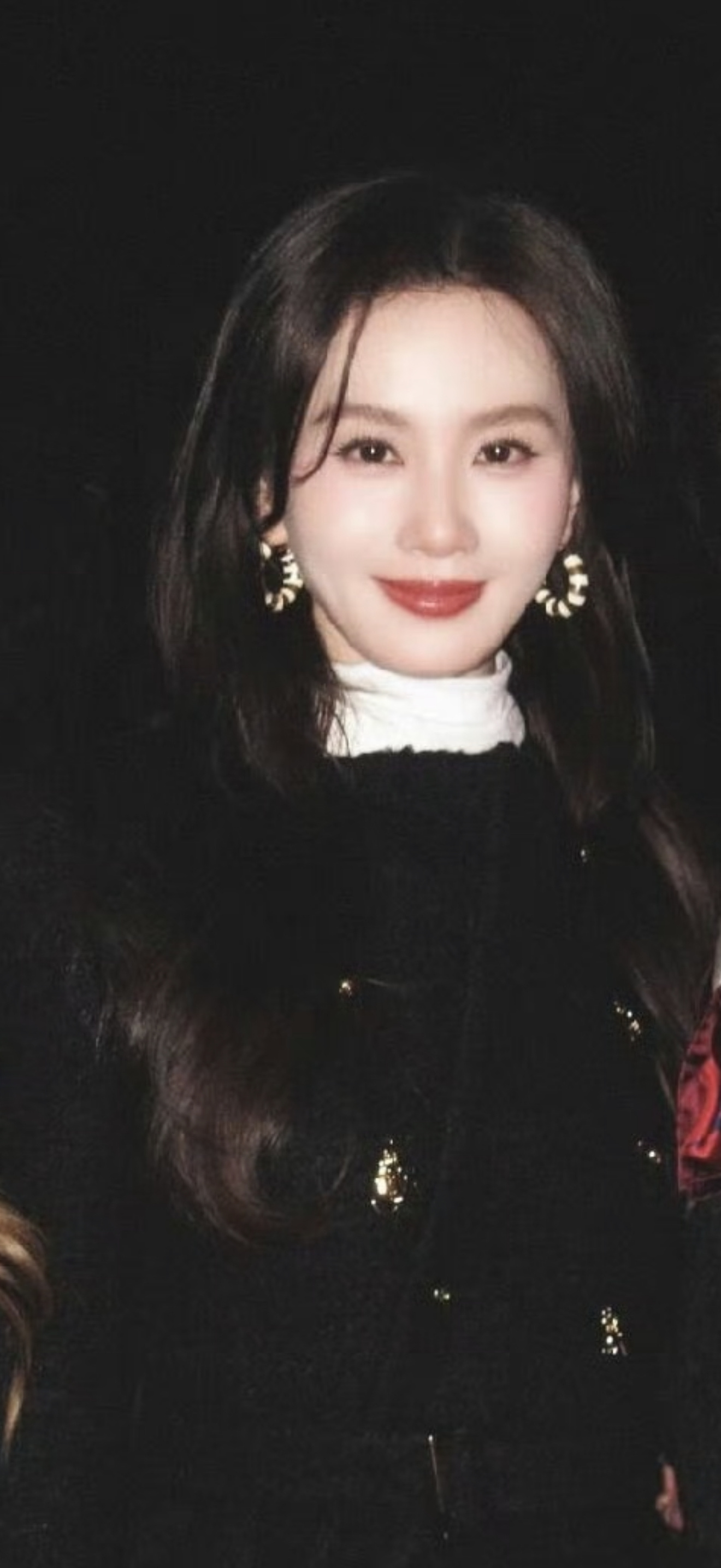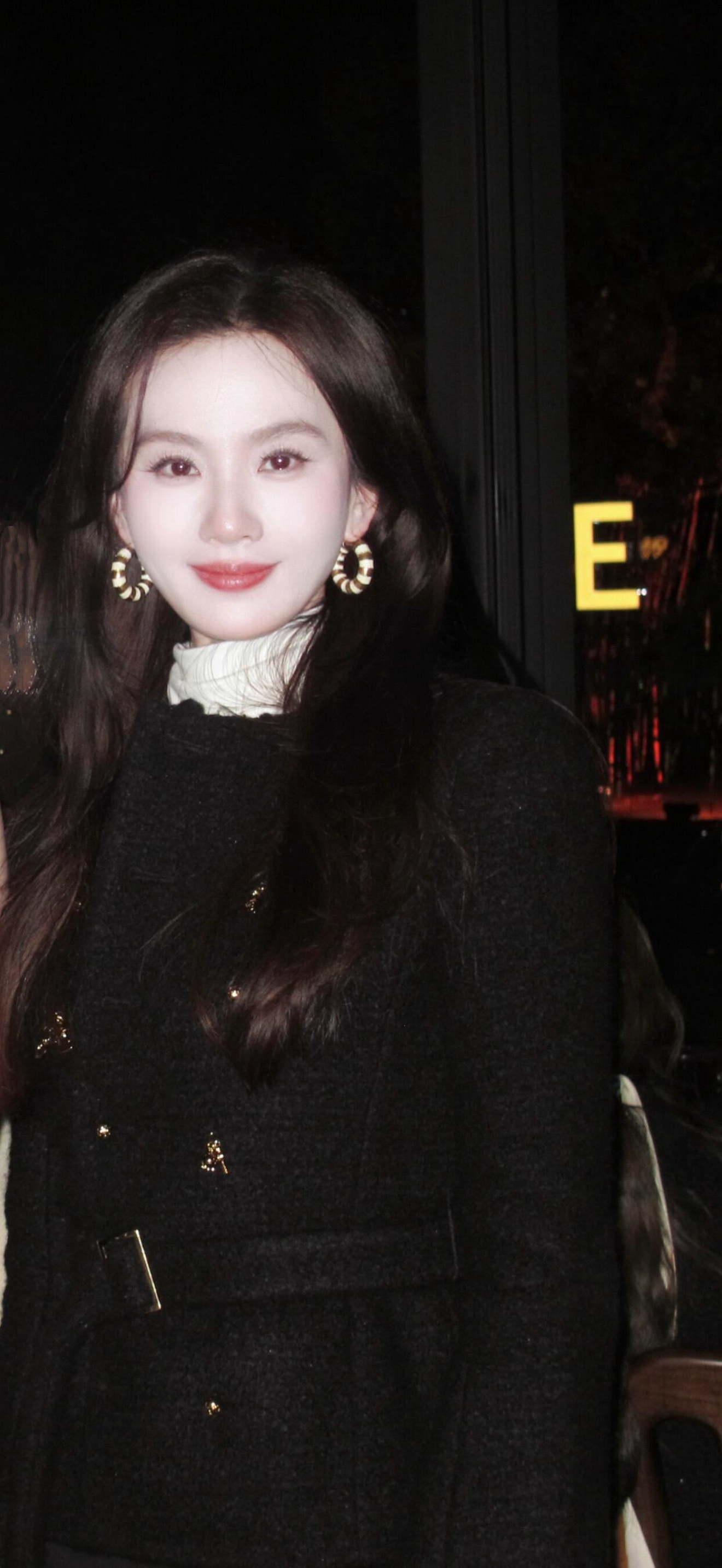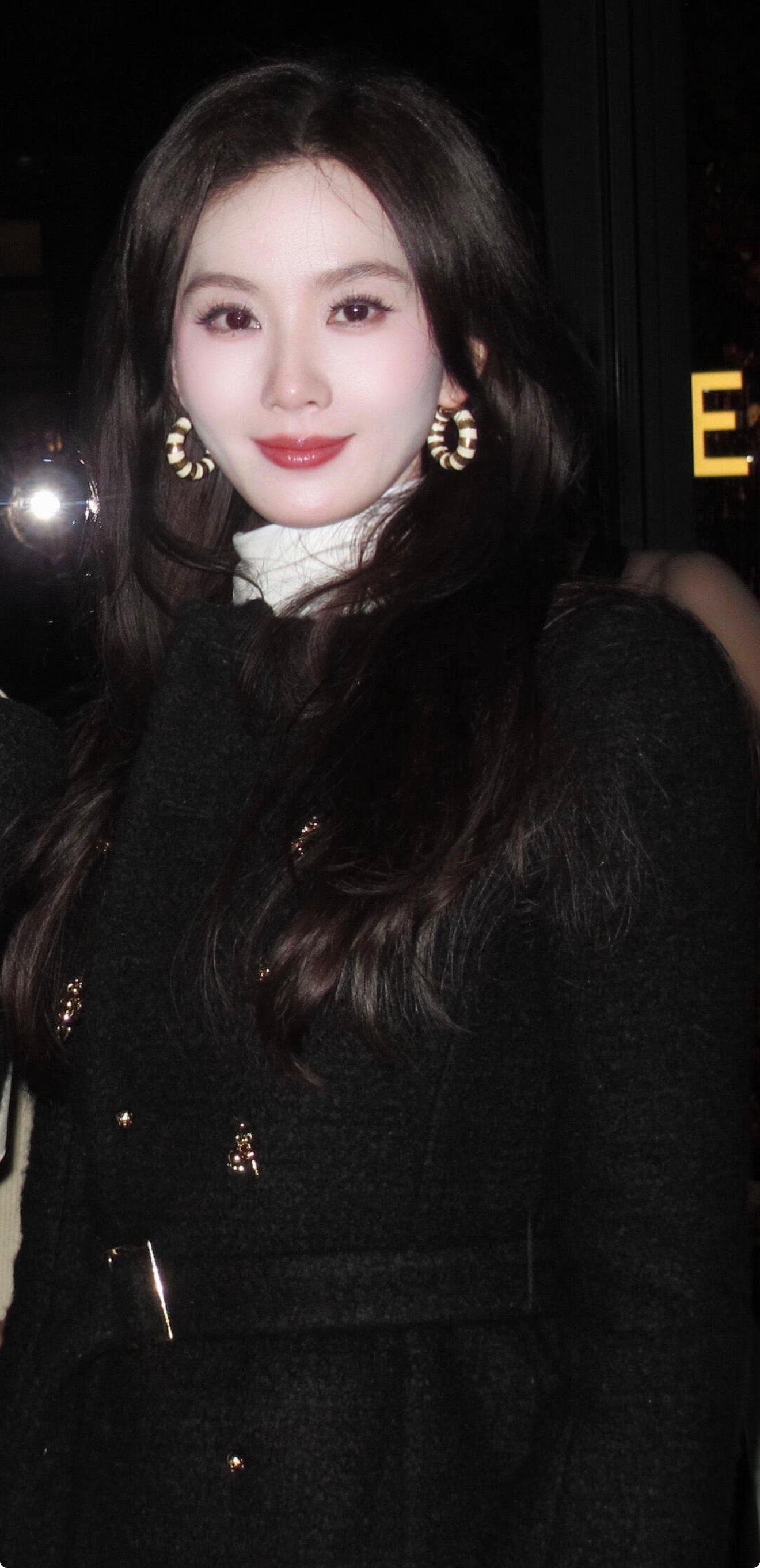 刘诗诗 这一身黑色外套配白色高领内搭,优雅又贵气! 复古大耳环点缀得刚刚好,红唇微扬的笑容又美又有氛围感,这状态真的鲨疯了!