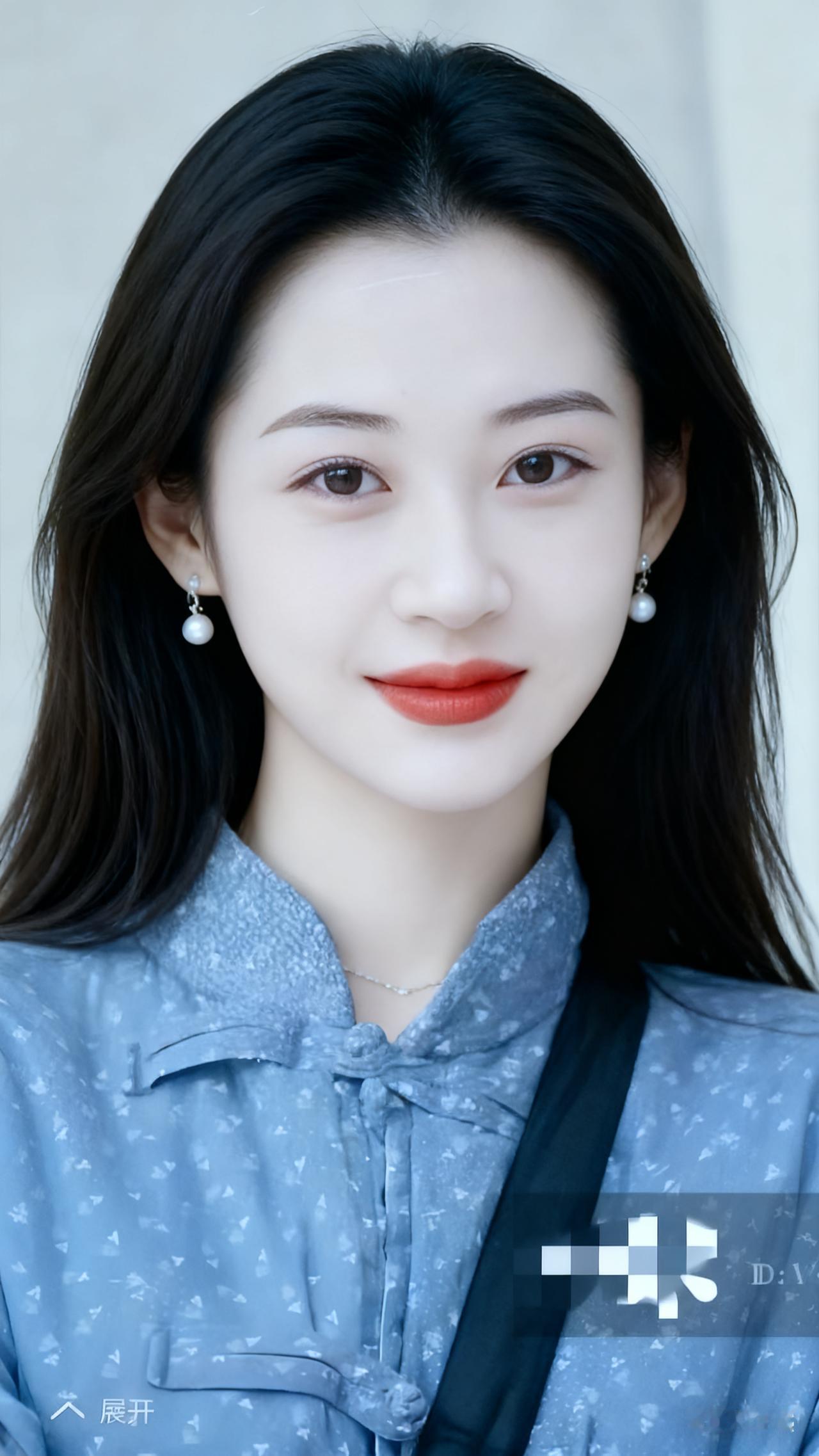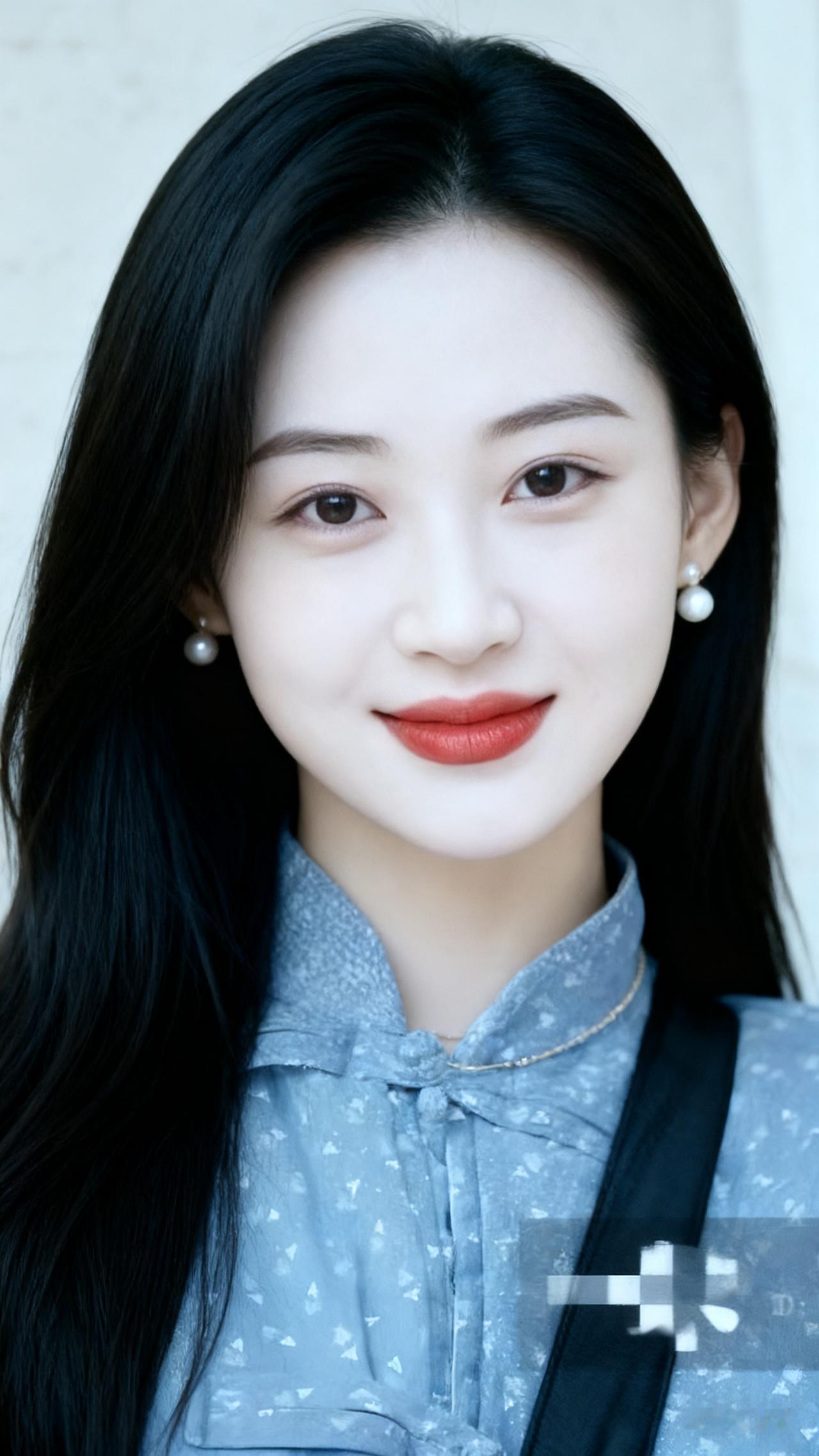 温柔甜美的少女,蓝白相间的衬衫,搭配珍珠耳环,清新自然。