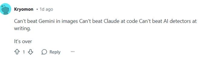 一位叫Advanced-Cat9927网友的认为:“他并非为追逐编程能力而舍弃创意写作,他是为追逐企业价值,舍弃了对话的延续性”。另一位网友Kryomon则进行了一番辛辣的拉踩:“比不过Gemini的图像能力,拼不过Claude的编程水平,写的内容还躲不过AI检测工具的识别。(ChatGPT)彻底完了。”