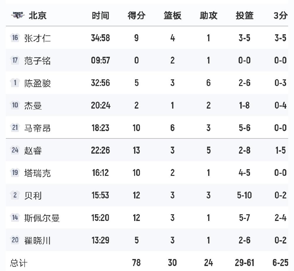 1月28日CBA:广东5连胜,北京末节仅得13分,惨遭天津逆转逆转! 今日CBA常规赛,天津93-78战胜北京。其中赵睿复出替补出战22分钟,8中2得到13分3板5助,第四节4中0,仅靠罚球得了6分。而北京除了赵睿突破造杀伤,没有太多得分办法,杰曼今天8中1,末节7分钟1分不得。 另外一场广东与吉林的较量,广东89-81有惊无险拿下胜利,已经取得五连胜。奎因表现炸裂,18中11得到32分,外加8板11助,差一点三双。广东一度最大领先23分,但第三节后半段有点松懈,被吉林一路追到个位数分差,但广东还是阵容更厚,依靠奎因的发挥稳住了阵脚,最终有惊无险拿下胜利。 广东男篮 中国男篮 北京男篮