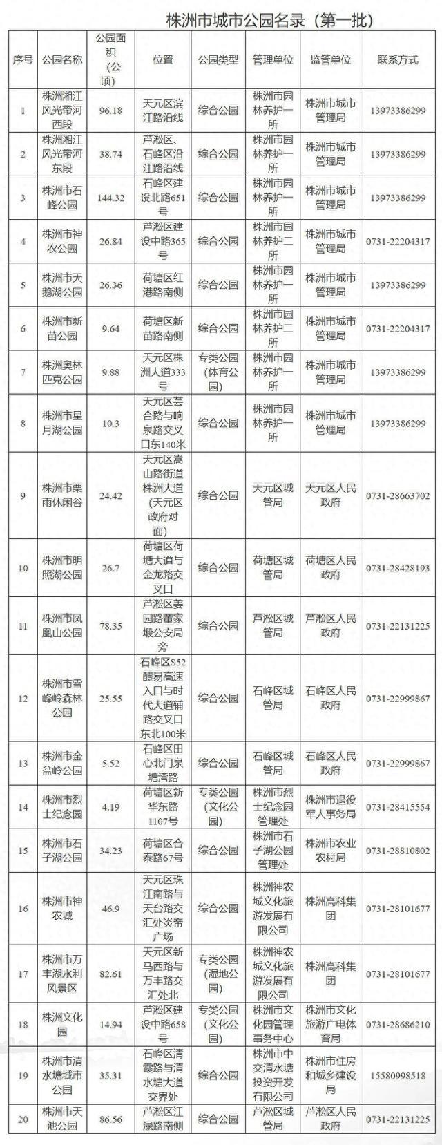 为进一步规范我市城市公园管理,完善公园服务功能,提升公园服务水平,根据《城市公园管理办法》相关规定,经市人民政府同意,现向社会公布《株洲市城市公园名录(第一批)》,首批共20个城市公园,其中综合公园16个、专类公园4个。