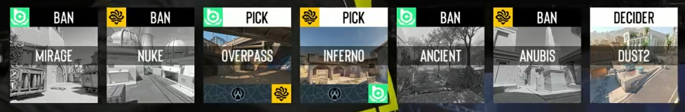 虎扑01月28日讯IEM克拉科夫站第一阶段,BC.Game对阵Legacy地图BP: