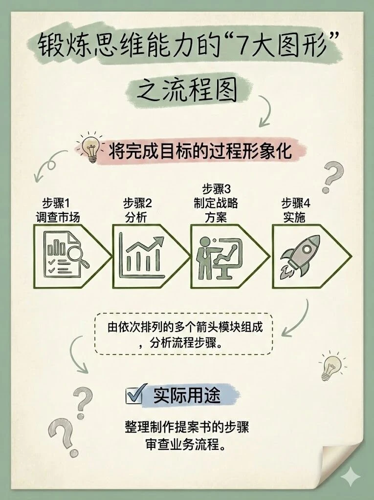 把目标拆成「步骤 1→步骤 2→步骤 3」,不管是做活动策划还是审核业务流程,跟着箭头走就不会漏环节!我现在写提案必用它,思路顺到飞起。