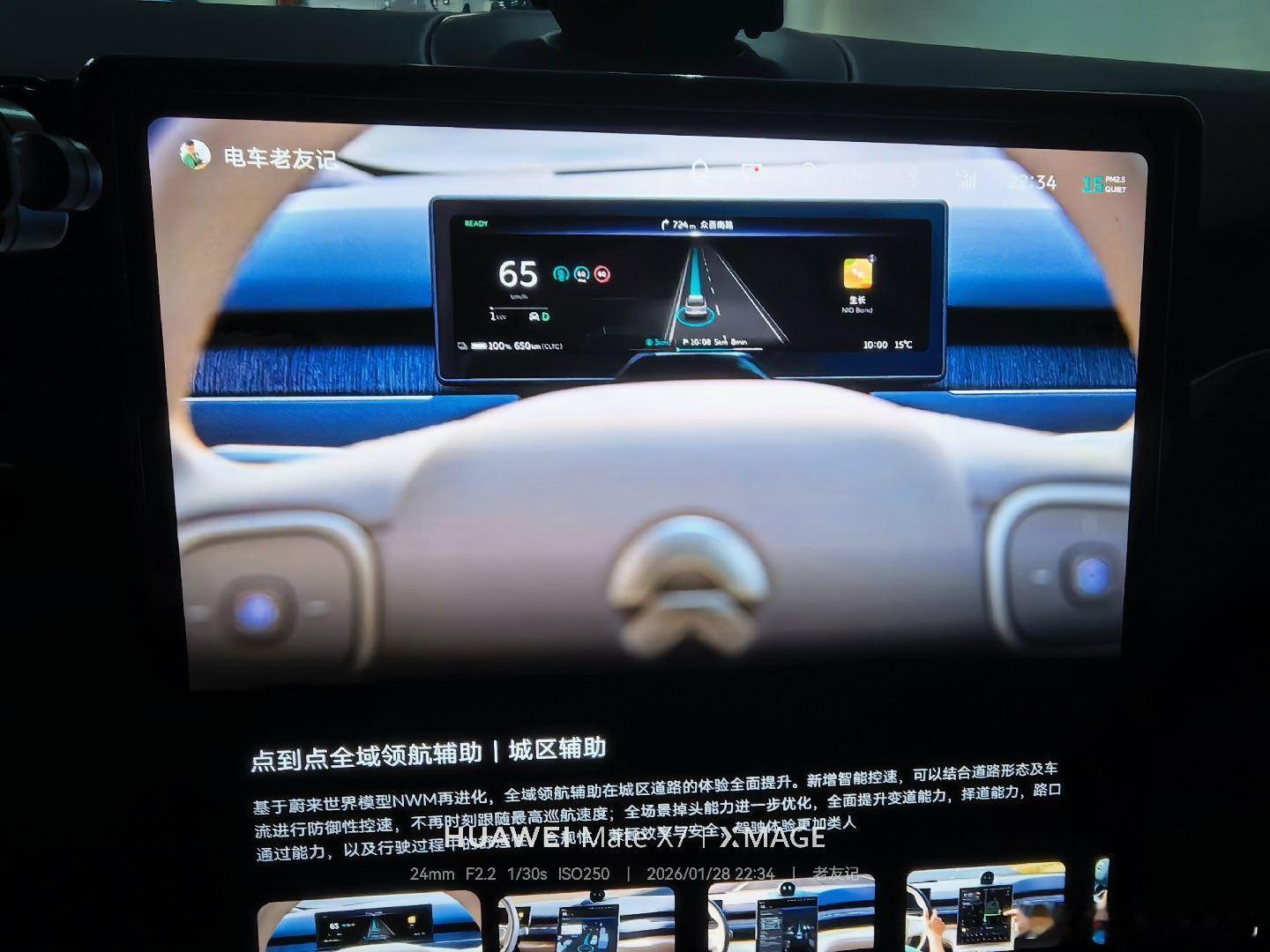 晚上专门去公司加班。试了一下最新的世界模型。nwm2.0先简单的说一下感受。1.首先我的环境是一个上下班通勤的环境,而且是在晚上。2.从车库里就可以把这个领航辅助驾驶打开,但是他没有那么聪明,找不到出口。但他会尝试。它跑不动的时候,我就给它加油门。因为我知道他肯定不会撞墙的。这点信心我是有的。3,一旦出了车库之后,哇表现立马就丝滑起来了。快速的从我们的小道上来到主干道,然后开始行动。4.这个仪表盘底色有了一个导航地图, HUD有一个导航地图,主屏幕有一个导航地图,是3地图协同。而且这个主屏幕给了一个立体的视野,非常有沉浸感。5,拐弯和加速非常的果断,但在有的时候会强势的挤压旁边的车。6.人机共驾这个模式非常好,轻轻的转方向盘,它能够理解你的意图。不像以前那样,非要去抢夺你的控制权。7.变道的话非常的积极,不会等到临近这个弯道了再去变,会有一个提前提前量变聪明了很多。8.还有很多极端场景没有去尝试,待我尝试完了之后,给大家出一个完整的视频。9.下单给nomi升了个级,买了个灵犀旋钮。辅助驾驶功能电车老友记蔚来世界模型