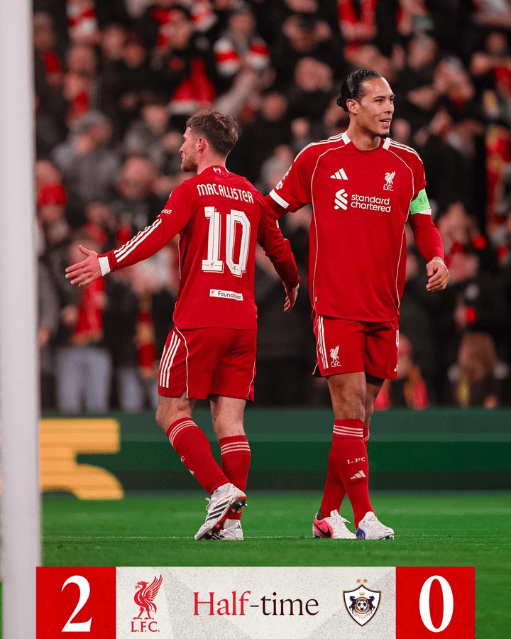 虎扑01月29日讯欧冠联赛阶段收官战,利物浦主场迎战卡拉巴克,半场战罢,利物浦2-0领先。