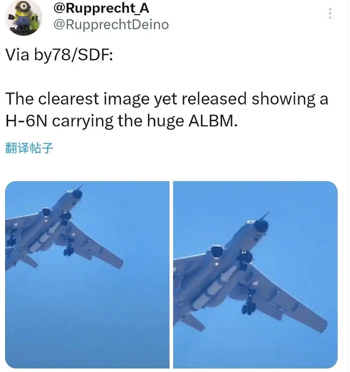 鲁普雷希特·A这位所谓的军事分析师在X账号上发布了一张图片和文字,没有想到这张图片的主角却是我们的轰6N轰炸机,而且还携带一款弹道导弹,瞬间引起了大家的极大关注!这款被外界称为 “CH-AS-X-13” 的导弹,被美国五角大楼认定为东风 - 21D 反舰弹道导弹的衍生型号,但其性能已实现质的飞跃。轰6N作为当下我国最具威慑力的轰炸机,虽然没法和俄美的顶端轰炸机相提并论,但是放在中国周边作战已经是绰绰有余了!而东风21D作为我国最具威慑力的中程导弹之一,射程超过2500公里,在西太平洋作战中可以发挥巨大威慑力,被称为航母的杀手锏之一!
