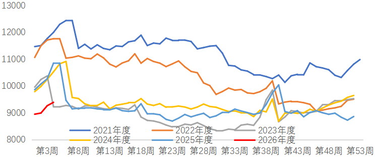 近期,钢厂利润边际修复,行业进入复产阶段,近两周铁矿石补库节奏明显加快。当前钢厂库存为9388万吨,虽环比增加,但与去年同期的10846万吨相比仍减少1458万吨,处于历史同期偏低水平。考虑到春节前有效补库窗口不足两周,下游钢企可能进一步加快采购节奏,冬储需求为铁矿石价格提供短期支撑。